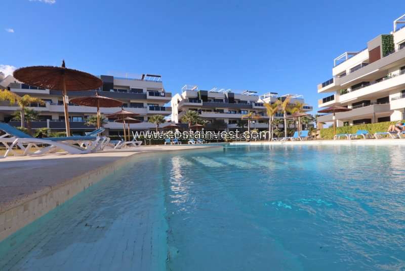 Apartamento en planta baja de diseño moderno con 2 dormitorios y 2 baños. Dispone de una terraza amplia y soleada, ideal para uso diario y reuniones al aire libre. La vivienda se sitúa en un residencial cerrado con piscina comunitaria y zonas ajardinadas, garantizando un entorno ordenado y cómodo. Incluye plaza de parking subterránea, aportando comodidad y seguridad.