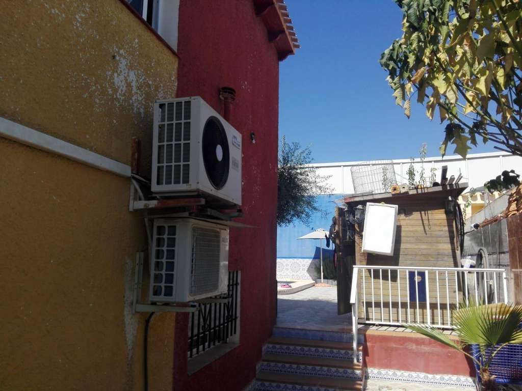 Chalet independiente de 2 plantas, situado a 400 MTS de l playa.~169 MTS construidos (año 1985) en parcela de 350 MTS.~Piscina particular privada, barbacoa, jardines.~~Planta alta:~3 dormitorios con armarios empotrados, baño completo, cocina amueblada, vitrocerámica, horno,sala de estar, salón comedor con chimenea, distribuidor, terraza, aire acondicionado.~Planta baja:~Garage para 1 vehículo con armario empotrado, cocina-comedor amueblada, vitrocerámica,horno,2 dormitorios uno de ellos con armario empotrado,distribuidor,baño completo.~Parcela soñada en 2 niveles,valladacon muros x los laterales y trasera~Valla del frente con muro bajo y rejas.~Situado frente a centros comerciales y restaurantes, parada bus a 50 MTS.~Zona residencial muy tranquila.~Posibilidad de ampliar o construir en altura hasta 4 plantas.
