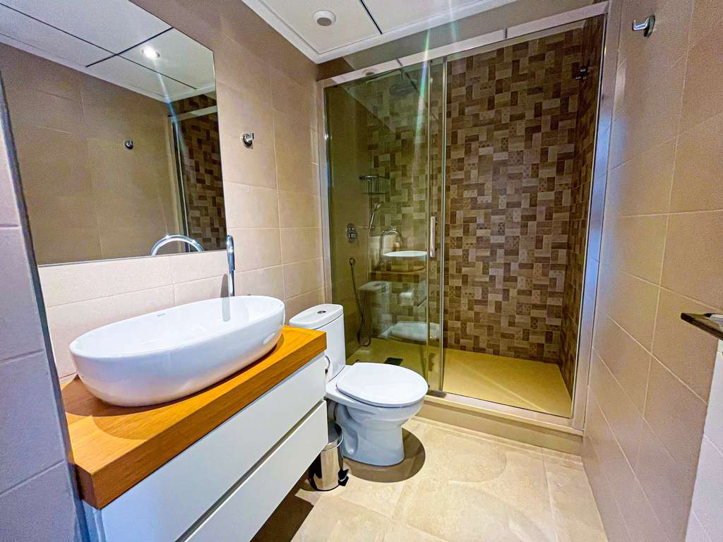 Esta villa está situada en un residencial exclusivo y tiene su propia piscina privada y una parcela de 410m2. La vivienda cuenta con 250m2 construidos divididos en 4 plantas. En planta baja encontramos un amplio salón con cocina americana, 1 dormitorio, 1 baño y terraza con con salida a la piscina. En planta semi-sótano encontramos un salón con cocina americana, 2 dormitorios y 1 baño. Además esta planta cuenta con sauna y ducha. En planta primera encontramos 2 dormitorios, cada uno tiene uno baño en-suite y una amplia terraza. En la planta superior hay un amplio solarium de 46m2.