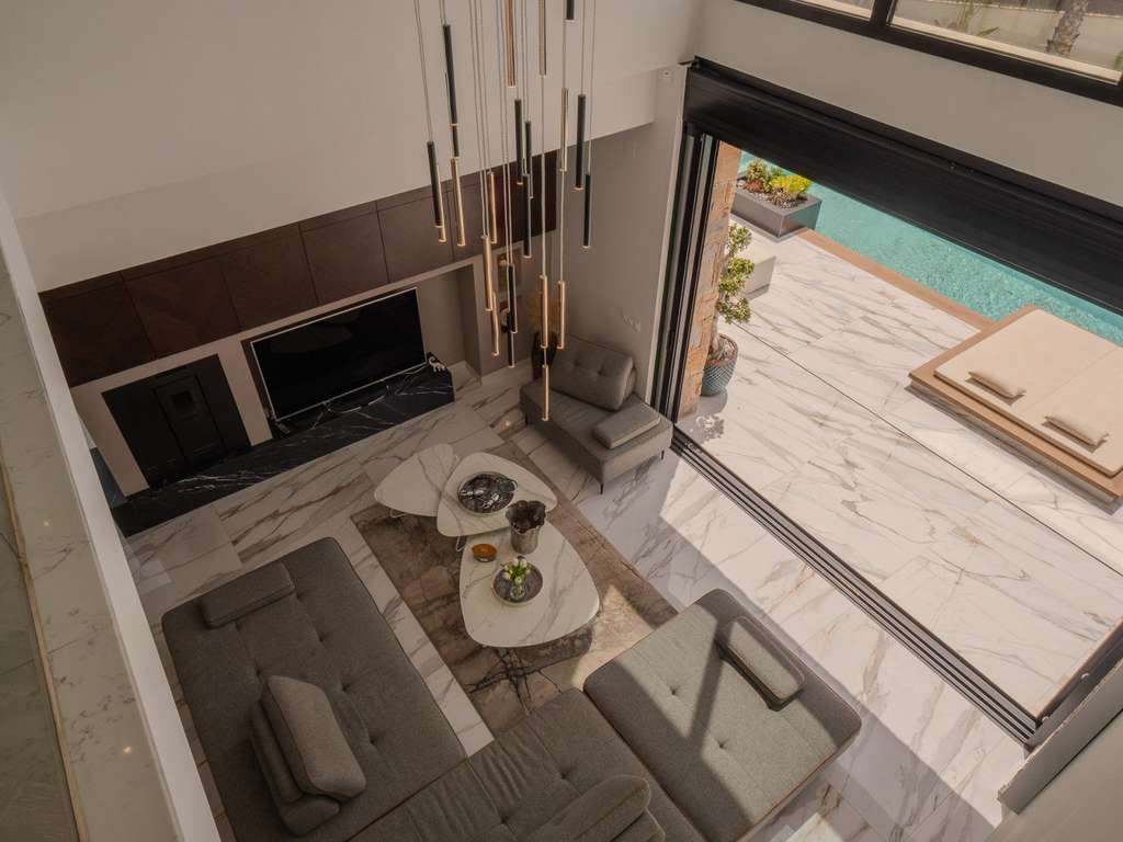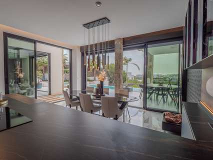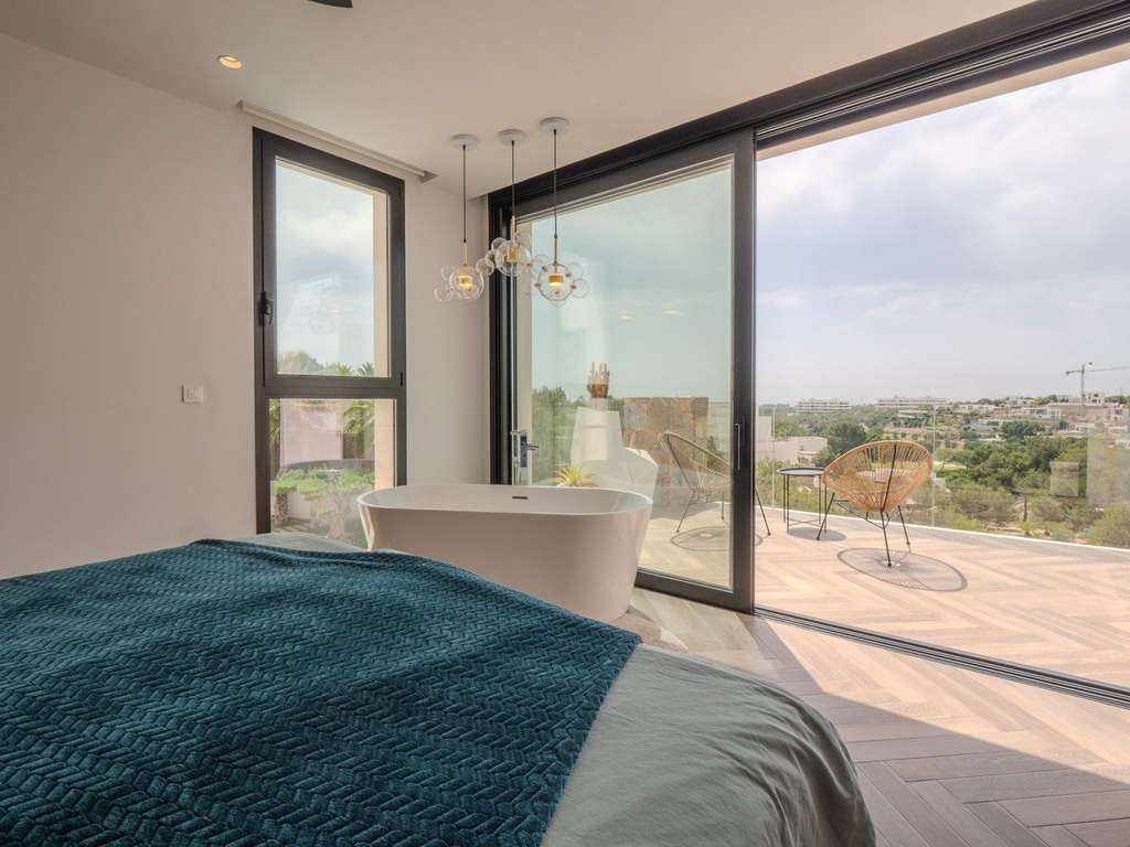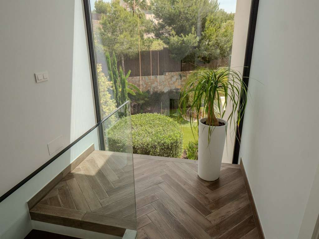 La casa está distribuida en 4 plantas conectadas por ascensor. En la planta superior, el dormitorio principal cuenta con baño en suite, bañera exenta, vestidor y terraza privada con vistas abiertas. En el solárium, un jacuzzi ofrece vistas espectaculares sobre el campo de golf y la ciudad. En la zona de piscina, encontrarás una cocina de verano con barbacoa, amplias zonas de descanso con hamacas y sofás, además de un rincón chill out con chimenea.