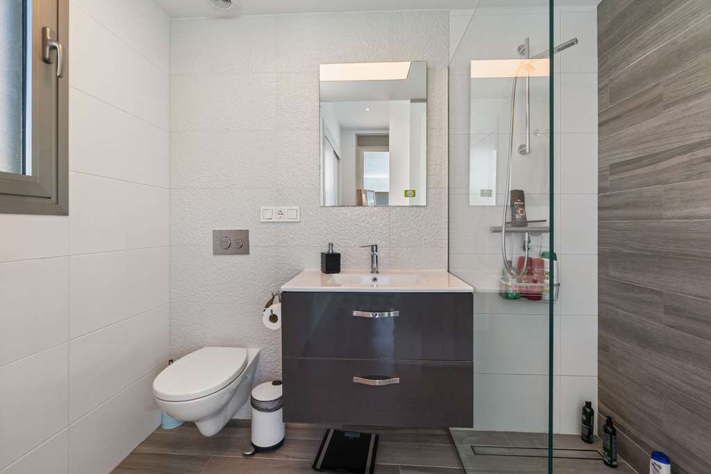 En la planta baja encontrarás un salón-cocina de concepto abierto, perfecto para socializar. Desde esta planta también tienes acceso directo a la piscina y a la zona exterior inferior, lo que facilita disfrutar de los días soleados. Esta planta también cuenta con un dormitorio y un baño.