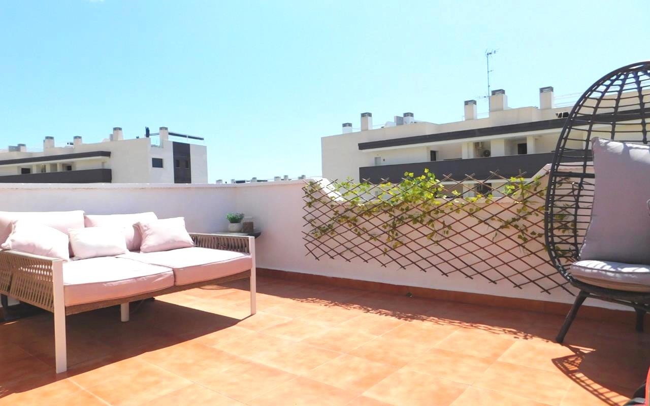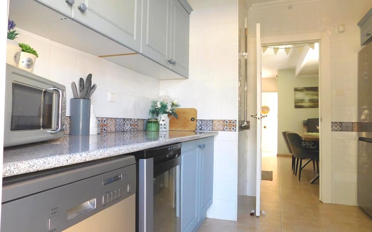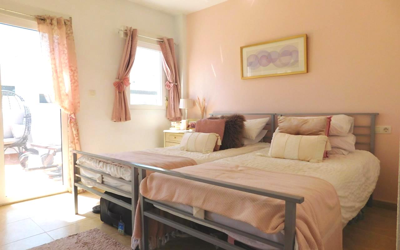 Además de poder disfrutar de las 9 piscinas de la zona, podrá disfrutar de una de ellas justo detrás de la propiedad. También cuenta con plaza de aparcamiento propia y zona de estar privada.
