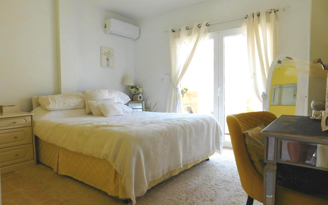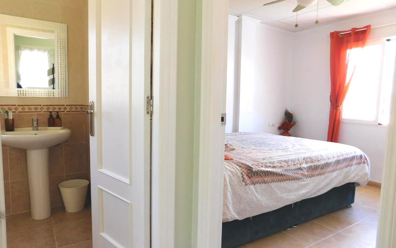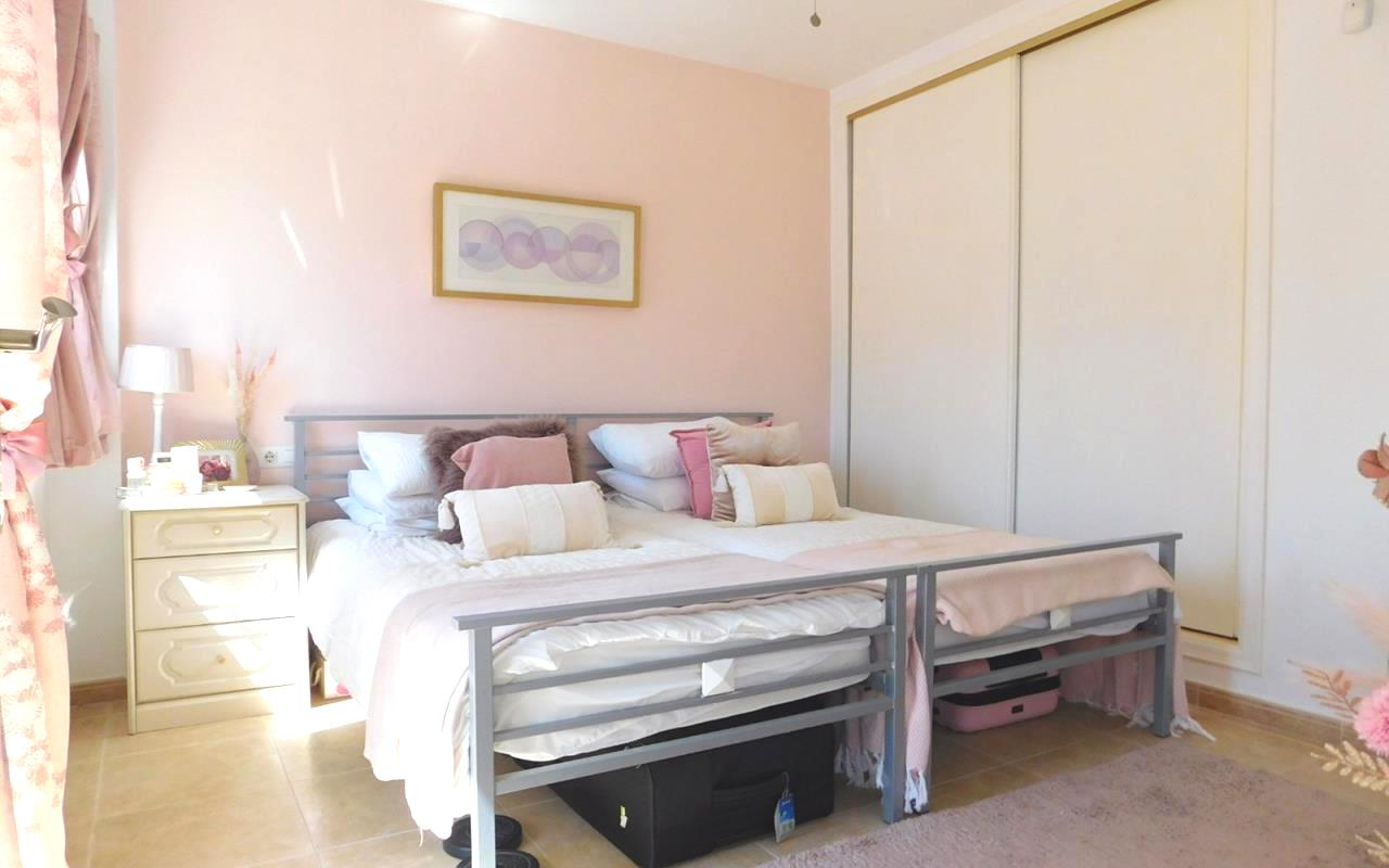 Este chalet de 117 m² con orientación sureste, en una parcela de 152 m², cuenta con un jardín delantero ideal para tomar el café por la mañana, que da paso al amplio salón y a la cocina de estilo francés. La cocina, totalmente equipada, tiene acceso directo al jardín trasero y a la piscina. En la planta baja hay un aseo de invitados con ducha y un balcón delantero, mientras que en la planta superior se encuentran los 2 dormitorios y un baño familiar con bañera. También hay un balcón que da al amplio dormitorio, que se ha cerrado para crear una encantadora terraza acristalada. En la planta superior se encuentra el dormitorio principal con cama doble y baño en suite. Junto al dormitorio se encuentra el amplio solárium de 14 m². La villa se vende parcialmente amueblada, con aire acondicionado, lavadero, toldos y calefacción eléctrica. Consúltela en nuestra página web WhiteVillasInSpain.