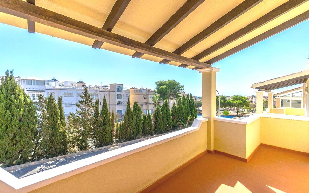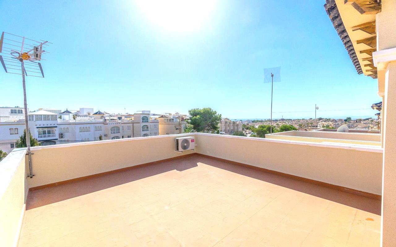 Chalet independiente de 3 dormitorios con piscina comunitaria, terraza, aparcamiento, cochera y solárium.