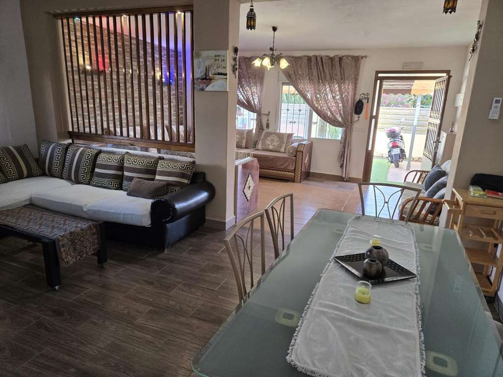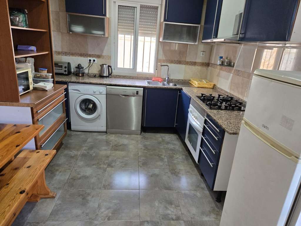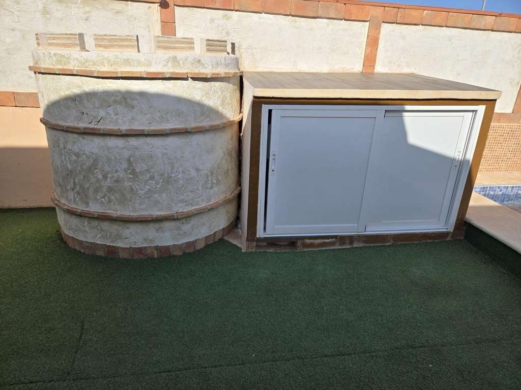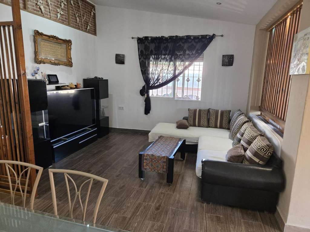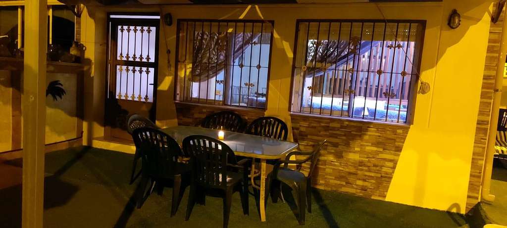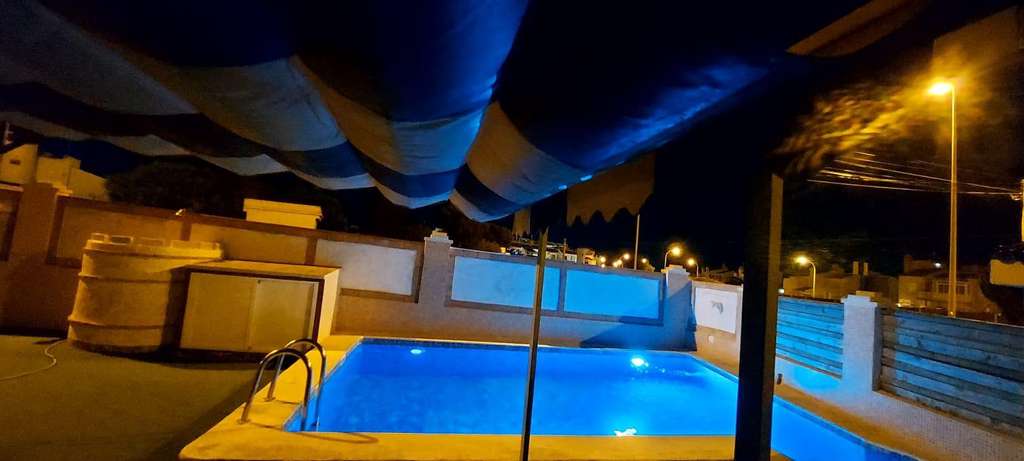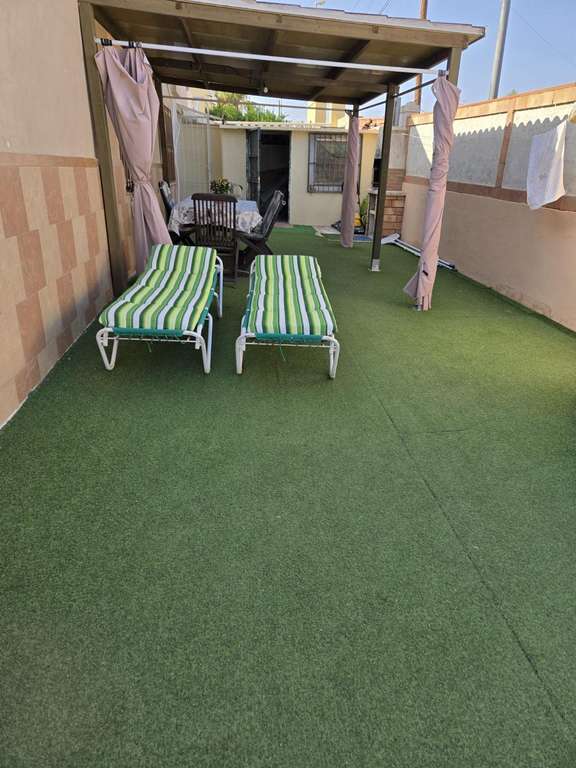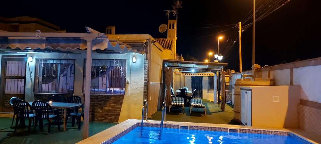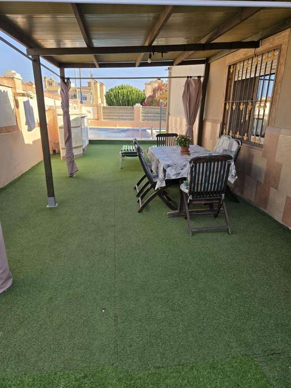 Chalet ADOSADO REFORMADO, en Playa Flamenca, Orihuela Costa, con 215M2. De Terreno en Esquina, Piscina Privada, Barbacoa, Toldos y Porche de Aluminio con Toldo, Ducha Exterior, Amplio Trastero, Consta de 2 Habitaciones Dobles, Armarios, 1 Baño Completo, 2 Amplios Salones, Semi-Amueblado, Se Llevan Salón Árabe, Aire Acondicionado, Altillo, Cocina Independiente, Electrodomésticos, con Salida a Barbacoa y Trastero, Rejas en Ventanas, Patio Trasero Independiente, Jardín Delantero, que arreglan los Vecinos de esa Parte Particularmente. El Chalet está para Entrar a Vivir. IBI/Suma: 101,05€ 190.000€