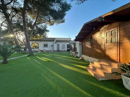 Acogedor chalet situado en una de las zonas más bonitas de Orihuela Costa, en Dehesa de Campoamor. La vivienda de unos 200m2 construida sobre la parcela de casi 1500m2 está a menos de 900m de las preciosas playas de Campoamor, a poca distancia caminando hasta la zona donde se encuentran las pistas de tenis y pádel, el supermercado, la farmacia, varios bares y restaurantes y otros servicios. El chalet construido en planta baja, encontraremos un total de 3 habitaciones y 2 baños, la habitación principal con baño en suite y un gran vestidor. Salón comedor con chimenea, grande cocina independiente, patio trasero con acceso a la zona del lavadero y un bonito porche delantero de unos 20m2. En el bien arreglado y cuidado jardín encontramos una gran piscina (15x4) privada con la cubierta transparente corredera, gimnasio con jacuzzy y sauna finlandesa, una casita de madera para invitados con un pequeño salón, 2 habitaciones y baño, y otras dos casas de madera, una con el baño que da servicio al jardín y la piscina y un trastero. Cuenta también con garaje privado para varios vehículos y zona de barbacoa en el patio trasero de la casa. Se vende amueblada y equipada.