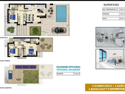 Villas con 3 dormitorios, 3 baños, un salón abierto con la cocina, jardín privado con la piscina y plaza de aparcamiento.