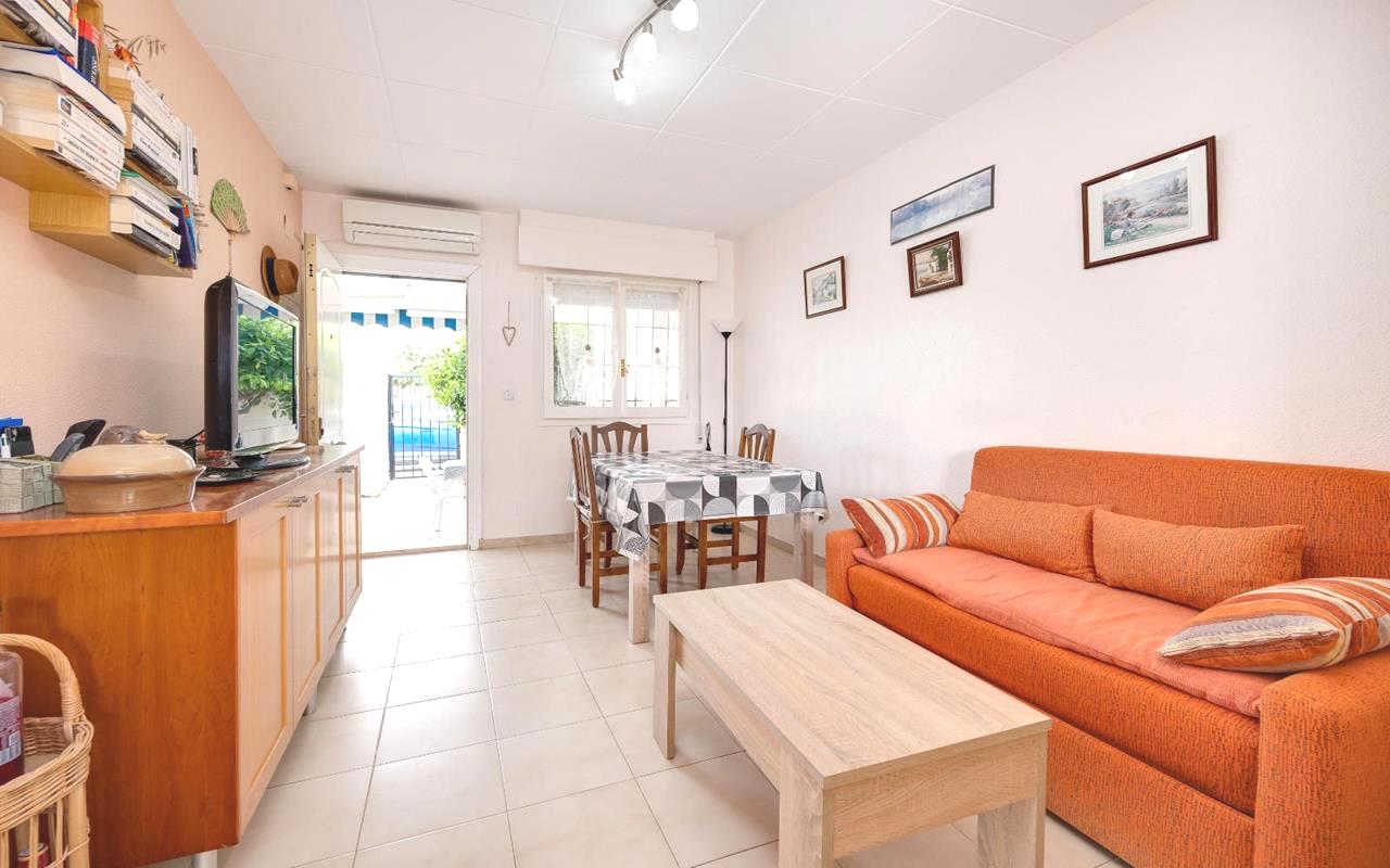 Chalet adosado de 2 dormitorios con piscina comunitaria, barbacoa, aparcamiento privado y cerca de todos los servicios.