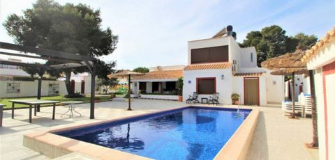 Sold fully furnished with many extras including air conditioning throughout, solar panels for hot water, plus 2 electric heaters in case they are needed. The villa is built in a traditional rustic style with original beam features, high ceilings and unique decoration. The villa offers excellent potential for a large family home or as a rental investment due to it´s pre-existing tourist license. The villa is located in an area close to supermarkets, bars and restaurants. The golfcourses are at 3.3km. The beach of Dehesa de Campoamor is at 5km. It's a 45 min. drive from the airport. And if you want to do some shopping there's the La Zenia Boulevard Shopping Centre at 5km. Year built: 1985