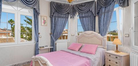 This four-storey Luxury Mansion is located just fifty meters from the beautiful sandy beach of Playa Flamenca in a beautiful garden setting with a waterfall and a spacious 15 meter swimming pool. Beautiful Baroque style furnishings, marble floors, kitchen decorated with zirconium, bedrooms with alcoves - these details make this villa truly unforgettable, The total area of the house is 760 m2, including a living room with fireplace, a dining room, offices, six bedrooms (five of which have their own bathroom), six bathrooms and three separate toilets. From the spacious terraces and solarium you can enjoy breathtaking sea views. In the house you will find a billiard room with bar, elevator, panoramic sea view, spacious garage for 5 cars, separate heated swimming pool (23m2) with jacuzzi, Turkish and Finnish saunas in the basement. There is a separate bedroom with bathroom for the staff. Outside in the garden there is a separate summer house with a bedroom, open kitchen and a barbecue area. The villa is equipped with the most modern equipment, including a heating system and central air conditioning, built-in central vacuum system and other amenities. As soon as you walk out of the villa, you arrive at a beautiful beach with white sand and the purest water of the Mediterranean. The area "Playa Flamenca" has developed an infrastructure with a variety of restaurants, large shopping centers, private shops and bars, all within walking distance.
