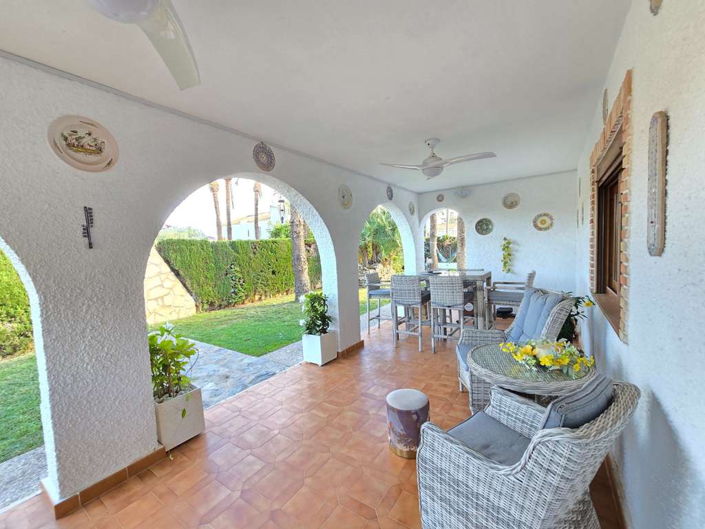 En el exterior se puede disfrutar de un precioso jardín con césped natural, una piscina privada y varias zonas de descanso y relajación. La terraza cubierta es el lugar perfecto para descansar, cenar o disfrutar de las noches mediterráneas. Además, hay un garaje y se han instalado paneles solares para una mayor eficiencia energética.