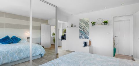 The ground floor boasts an impressive kitchen with integrated Bosch appliances, seamlessly connecting to the expansive living room and dining area. The unique windows offer breath taking views of the landscape while flooding the interior with natural light. Two bedrooms, a gym (could be converted to a 6th bedroom with an en-suite), and a bathroom complete this level.