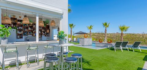 Pool bar table area and fully functional outdoor kitchen with bathroom and BBQ area