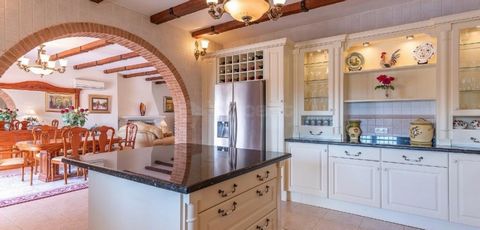 Upon entering, you'll be greeted by a spacious lounge, where original wooden beams stretch across the ceiling, adding a touch of rustic elegance. The large windows flood the room with natural light, creating a warm and inviting atmosphere. The centrepiece is a feature fireplace, perfect for cozy evenings during cooler months.One of the most remarkable features of this villa is the bright open-plan kitchen. It boasts a stunning island bench making it the heart of the home, ideal for entertaining guests and there's even a separate area for dining for enjoying family meals. The kitchen is a true work of art with original wooden beams giving it an air of grandeur and sophistication.With four bedrooms, this villa ensures that both residents and guests have a comfortable and private retreat. The master suite is especially spacious and luxurious, offering an ensuite bathroom and a private balcony overlooking the scenic beauty of Costa Blanca.Step outside, and you'll find a world of beauty waiting for you. A small bridge stretches over a tranquil, meandering lake, adding a touch of romance to the landscape. The outside terraces provide the perfect space for alfresco dining, soaking up the Mediterranean sun, or simply savouring the breathtaking mountain views that surround the property.For those who appreciate both aesthetics and practicality, this villa boasts two separate double garages. Whether you need the extra space for vehicles, storage, or a workshop, you have plenty of room to tailor it to your needs.In summary, this 4-bed detached country villa near La Campaneta, Costa Blanca, is a remarkable fusion of traditional charm and modern luxury. With its original wooden beams, ornate kitchen, outdoor features, and stunning mountain views, it provides the perfect canvas for a serene and sophisticated country lifestyle. Whether you're looking for a permanent residence or a vacation home, this villa promises a unique blend of comfort and elegance in a truly enchanting setting. Contact us today to arrange for your personal viewing appointment.