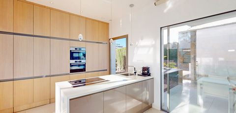 Moderna villa de lujo en Limonero, Las Colinas Golf and Country Club Impresionante villa orientada al sur situada en la exclusiva comunidad de Limonero, con acceso directo al galardonado campo de golf. Sobre una parcela de 697 m², ofrece 260 m² de espacio habitable cuidadosamente diseñado, un solárium de 45 m² y una elegante piscina privada que recorre todo el lateral de la vivienda. La planta principal cuenta con un salón-comedor de concepto abierto con cocina de diseño completamente equipada, acabados de alta gama y grandes ventanales que integran perfectamente el interior con el exterior. Un pasillo acristalado conduce a la suite principal con terraza privada, armarios empotrados y un lujoso baño en suite con bañera de hidromasaje y ducha tipo walk-in. En la planta baja se encuentran dos dormitorios adicionales con acceso directo a una amplia terraza y jardín paisajístico. También dispone de un baño completo, dos trasteros y una gran sala polivalente, ideal como sala de juegos o de entretenimiento. Las zonas exteriores son perfectas para disfrutar, con varias terrazas, zona de barbacoa, ducha exterior y un solárium panorámico en la azotea con vistas al golf y al mar. Construida en 2017 y vendida completamente amueblada, la villa incluye: Suelo radiante Aire acondicionado Electrodomésticos Persianas eléctricas Sistema de alarma Paneles solares Domótica 2 plazas de aparcamiento privadas Una oportunidad excepcional para adquirir una vivienda de lujo llave en mano en una de las comunidades más exclusivas de la Costa Blanca. Sobre Las Colinas Golf and Country Club Las Colinas Golf & Country Club es una comunidad residencial donde se ubican villas y apartamentos exclusivos alrededor de un campo de golf de campeonato. El campo par-71 ha sido diseñado por el reconocido arquitecto paisajista americano Cabell B. Robinson y cuenta con una zona de juego corto diseñada por el legendario Miguel Ángel Jiménez. El resort ha sido premiado por los World Travel Awards como "Mejor Resort de Villas de España y Europa". Instalaciones: · Campo de golf de 18 hoyos par-71 · Restaurantes y cafeterías · Gimnasio, pistas de tenis, baloncesto y voleibol · Spa y piscina · Tienda · Punto de carga para coches eléctricos · WOW Beach Club con piscina, restaurante y bar Distancias: · Aeropuerto de Alicante – 65 km, 50 min · Centro comercial La Zenia Boulevard – 12 km, 16 min · Supermercado más cercano – 6 km, 10 min · Beach Club – WOW Beach – 9 km, 15 min · Club náutico Dehesa de Campoamor – 8 km, 15 min · Hospital más cercano, Centro Médico Ribera Campoamor – 12 km, 16 min