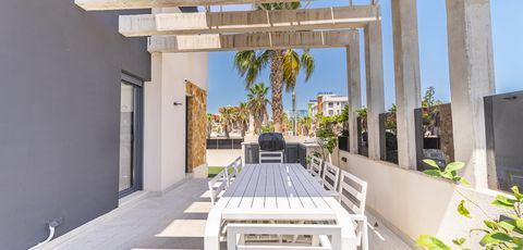 Esta elegante villa en esquina, construida en 2021, se distribuye en dos plantas más un sótano con salón. Dispone de 185 m² construidos sobre una parcela de 285 m², ofreciendo 4 amplios dormitorios, 4 baños, cocina equipada, terrazas soleadas y un trastero. La vivienda se encuentra en muy buen estado, amueblada, con armarios empotrados, calefacción individual eléctrica y orientación sur. Además, cuenta con aparcamiento dentro del a parcela.