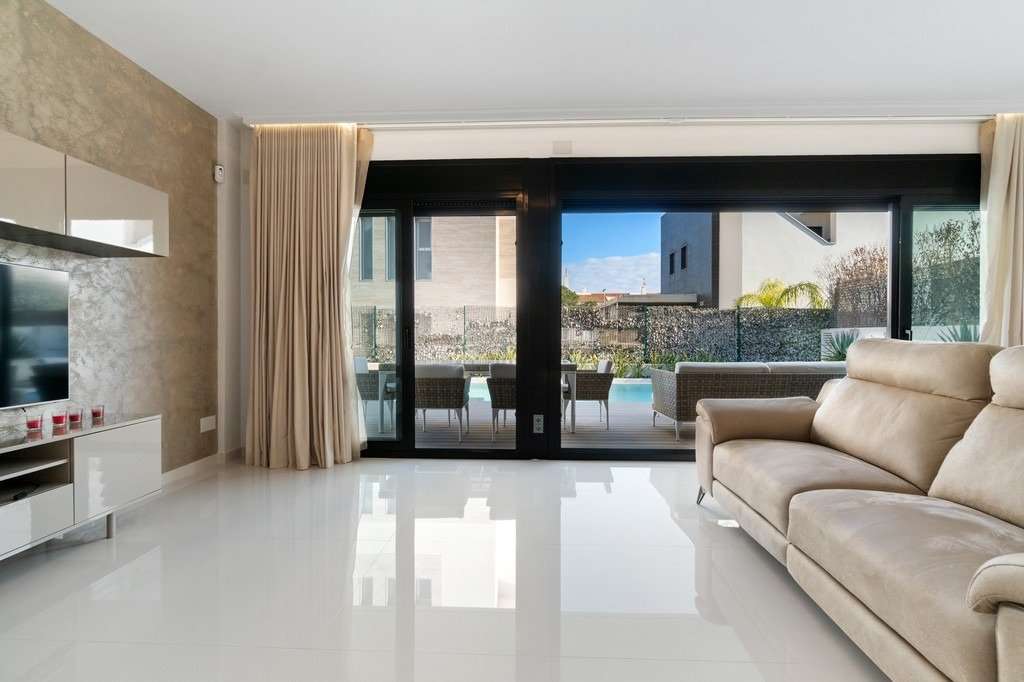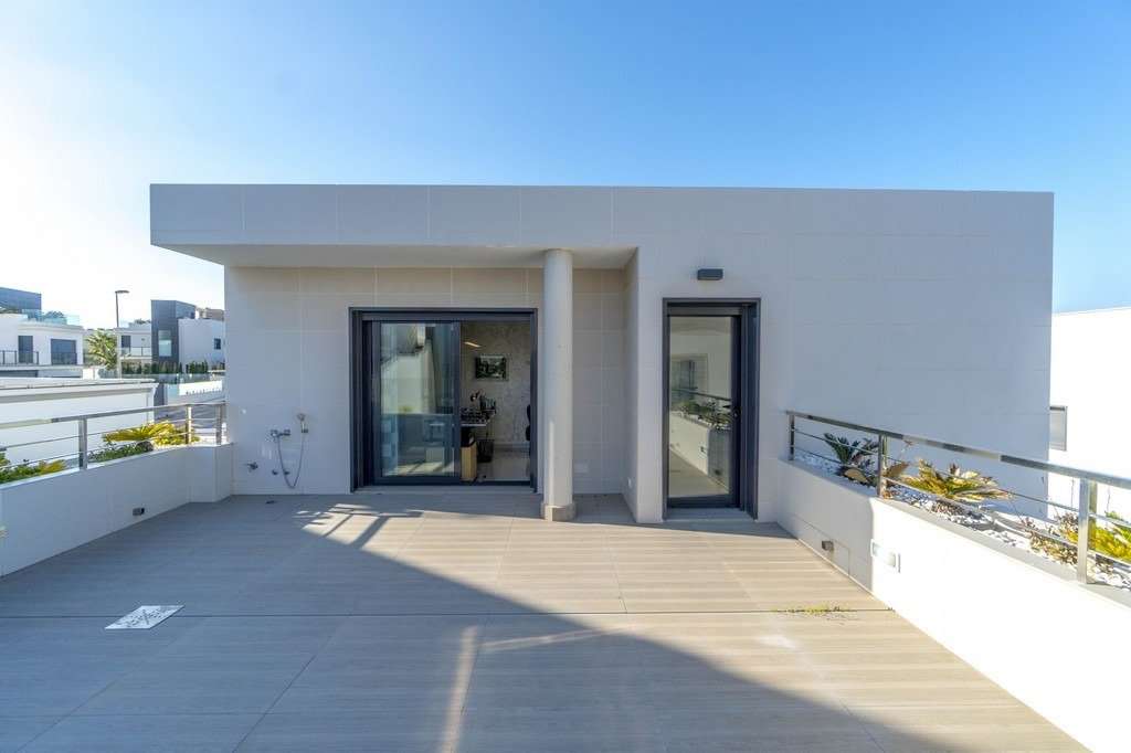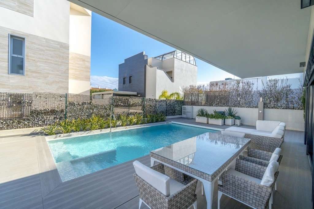 Villa de lujo de estilo moderno situada en Campoamor, solamente a 300 m de la playa. Villa con superficie 200m2, construida sobre la parcela de 500 m2, la vivienda consta de 4 dormitorios, 3 baños, salón comedor, cocina americana, terraza y solárium de 46m2 con vistas al mar. La parte exterior tiene una piscina privada 8x4. Suelo radiante en los baños, aire acondicionado centralizado instalado, parking en la parcela. Materiales de primera calidad. Piscina climatizada de agua salada. Está cerca de todos los servicios, colegios, a sólo 10 minutos en coche desde el mayor centro comercial de Alicante, Zenia Boulevard, a 40 minutos del aeropuerto de Alicante ya pocos minutos de algunos de los mejores campos de golf.~ ~