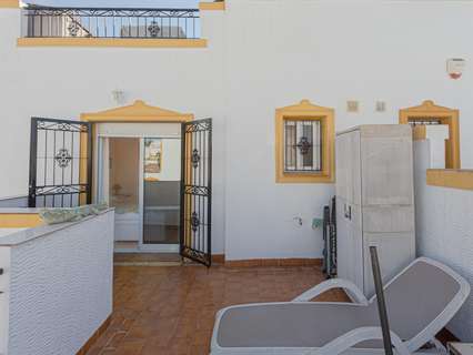 Casa de 90 m² construidos ubicada en la urbanización Vistabella Golf , a tan solo 15 minutos en coche de las playas de Guardamar del Segura . Se distribuye en dos plantas y dispone de: 3 dormitorios incluido el principal con acceso a terraza privada. 2 baños reformados . Amplia terraza en planta baja , ideal para comer al aire libre o relajarse. Solárium privado en la planta superior. La casa se vende completamente amueblada , lista para entrar a vivir.