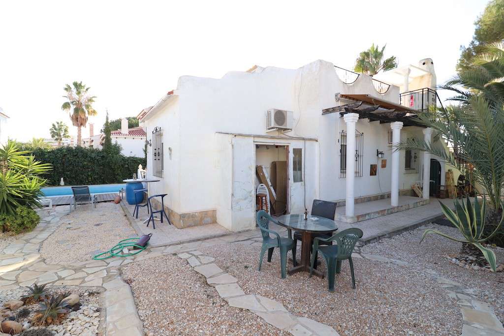 CHALET INDEPENDIENTE EN VENTA EN LA ZONA DE LA ZENIA, CERCA DE TODAS LAS PLAYAS CON BANDERA AZUL DE ORIHUELA COSTAChalet independiente en venta en la zona muy solicitada de La Zenia, 300m de las playas con bandera azul de Playa Flamenca, Cabo Roig y Campoamor, Costa Blanca. Una oportunidad fantástica para comprar una villa junto a todos los prestigiosos campos de golf de Villamartín, Las Ramblas y Campoamor.La propiedad consta de 2 dormitorios, baño, cocina abierta y área de servicio, salón-comedor con chimenea, gran solárium con vistas, gran terraza, aire acondicionado y se venderá totalmente amueblado y con muebles de jardín.Situada en una parcela casi de 600m2, con una superficie construida de 82m2, la villa también cuenta con una piscina, un jardín maduro, espacio para automóviles separado con puertas, área de barbacoa y mucho más ...Las playas de Orihuela Costa están a poca distancia de esta propiedad, así como todos los servicios, como supermercados, farmacias, bancos, etc. Nuestros lujosos campos de golf también se encuentran a poca distancia en auto.Esta propiedad se encuentra en Playa Flamenca a pocos km del centro comercial más grande de la provincia, La Zenia Boulevard. La Zenia Boulevard ofrece entretenimiento diario para adultos y niños, así como increíbles restaurantes, bares y tiendas. Tiene más de un ambiente de pueblo que un centro comercial.