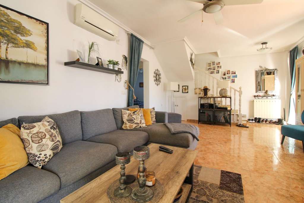 Esta hermosa villa de 3 dormitorios y 2 baños en el corazón de La Regia ofrece una combinación perfecta de comodidad y estilo, situada a solo 5 minutos a pie de la animada franja de Cabo Roig y a 10 minutos a pie de la playa. Con una amplia parcela, piscina privada y múltiples y acogedoras zonas de estar, esta casa está diseñada para la relajación y el disfrute. Planta baja: Cocina independiente totalmente equipada, ideal para los amantes de la cocina. Amplio salón con luz natural, que da a una terraza acristalada contigua orientada al sur, ideal para disfrutar del sol invernal. Dos cómodos dormitorios y un baño moderno hacen de esta planta un espacio funcional y práctico. Planta alta: Un dormitorio principal privado con baño en suite y un soleado balcón con vistas serenas. Acceso directo a una terraza en la azotea, perfecta para tomar el sol, entretenerse o disfrutar de tranquilas tardes bajo las estrellas. Los espacios exteriores de la villa son igualmente impresionantes, con una piscina privada rodeada de exuberante vegetación, múltiples zonas de estar para relajarse al aire libre y amplio espacio para cenar o entretenerse al aire libre. Esta propiedad es una verdadera joya para quienes buscan la combinación de proximidad a servicios, vida junto a la playa y serena privacidad. ¡Contáctenos hoy mismo para concertar una visita y hacer de esta villa su nuevo hogar!