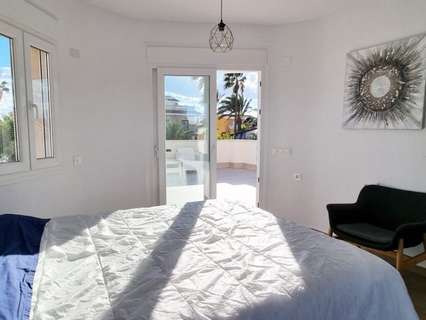HERMOSA VILLA CON PISCINA PRIVADA Y JARDIN EN PLAYA FLAMENCA, ORIHUELA COSTA.Tenemos esta hermosa villa independiente en un estilo mediterráneo a unos 50 m de distancia de playa de arena blanca en venta en Playa Flamenca. La casa está ubicada cerca del mar y de las playas de Orihuela Costa, tiene parcela privada con hermosas áreas ajardinadas, bonita piscina y área de barbacoa. Propiedad de 121 m2 con una superficie de parcela 750 m2 cuenta con 4 dormitorios y 3 baños, amplio salón/comedor, cocina abierta, porche, terraza con vistas al mar y zonas ajardinadas. La casa se vende con muebles y tiene aire acondicionado y calefacción central. Ideal para vivir todo el año o pasar unas vacaciones de verano.Las playas de Orihuela Costa están a poca distancia de esta propiedad, así como todos los servicios, como supermercados, farmacias, bancos, etc. Nuestros lujosos campos de golf también se encuentran a poca distancia en auto.Esta propiedad se encuentra en Playa Flamenca a pocos km del centro comercial más grande de la provincia, La Zenia Boulevard. La Zenia Boulevard ofrece entretenimiento diario para adultos y niños, así como increíbles restaurantes, bares y tiendas. Tiene más de un ambiente de pueblo que un centro comercial.