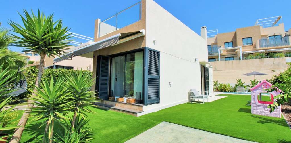 Villa independiente en venta en La Zenia, cerca de todas las playas con bandera azul de Playa Flamenca, Cabo Roig y Campoamor, Costa Blanca.La propiedad moderna consta de 3 dormitorios, 2 baños, cocina abierta, salón-comedor, solárium con vistas al parque y se venderá totalmente amueblado.Situada en una parcela la casa cuenta con una piscina y un jardín.Las playas de Orihuela Costa están a poca distancia de esta propiedad, así como todos los servicios, como supermercados, farmacias, bancos, etc. Nuestros lujosos campos de golf también se encuentran a poca distancia en auto.