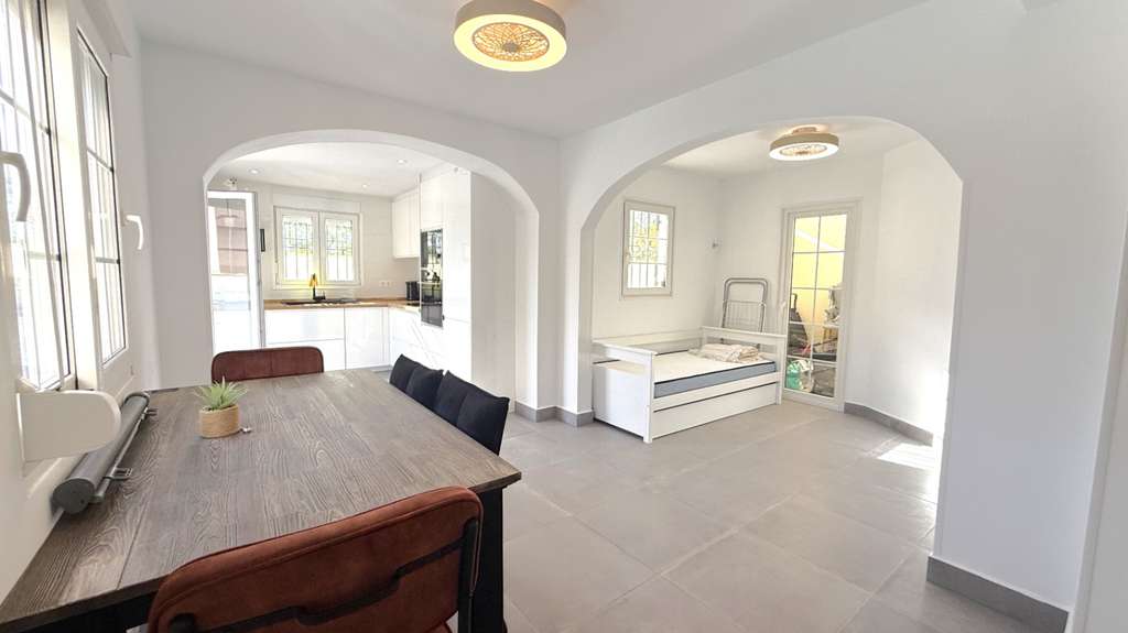Descubre esta hermosa casa de esquina completamente renovada en La Zenia, idealmente ubicada a solo unas calles del famoso La Zenia Boulevard. Disfruta de la vida mediterránea moderna en un hogar que combina estilo, comodidad y un excepcional espacio al aire libre.Diseñada originalmente con 3 dormitorios y 2 baños, la propiedad se ha reorganizado inteligentemente en un espacioso diseño de 2 dormitorios y 2 baños, ofreciendo habitaciones más grandes, un mejor flujo y una sensación más abierta y contemporánea en todo el espacio.Sal a tu propia oasis privado: una piscina climatizada, perfecta para disfrutar durante todo el año, rodeada de una soleada terraza ideal para relajarse, cenar o entretener. Como casa de esquina, la propiedad se beneficia de mayor privacidad, luz adicional y amplias áreas al aire libre.En el interior, cada detalle ha sido actualizado—acabados modernos, materiales de alta calidad y elecciones de diseño pensadas hacen que este hogar esté listo para ser habitado. Ya sea que busques una residencia permanente, un refugio vacacional o una inversión de alquiler de alto rendimiento, esta joya renovada en el corazón de La Zenia ofrece un valor y conveniencia excepcionales.
