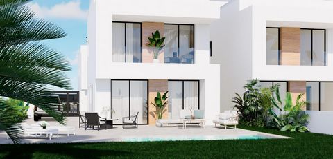 Viviendas modernas construidas en 2 plantas, dispone de 3 dormitorios, 2 baños, cocina americana con salón, armarios empotrados, Aire Acondicionado por conductos, solárium, jardín privado con la piscina y plaza de aparcamiento.