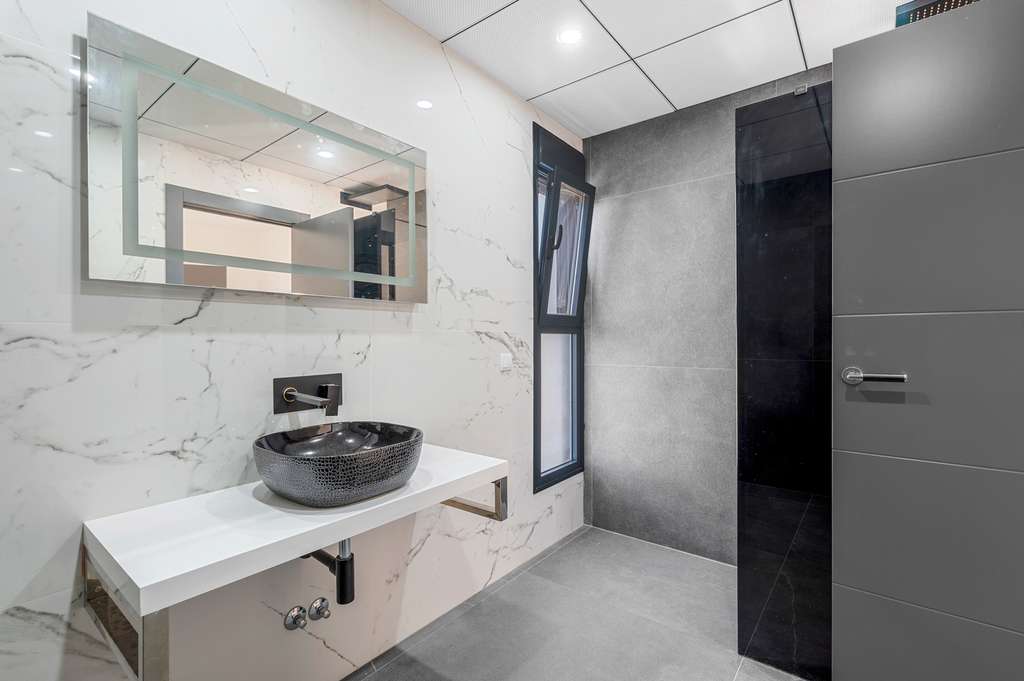En la primera planta hay un dormitorio muy espacioso con su correspondiente vestidor y baño, así como acceso directo al gran solárium con preciosas vistas. El solárium también cuenta con un fregadero y está preparado para la instalación de una barbacoa o cocina exterior.