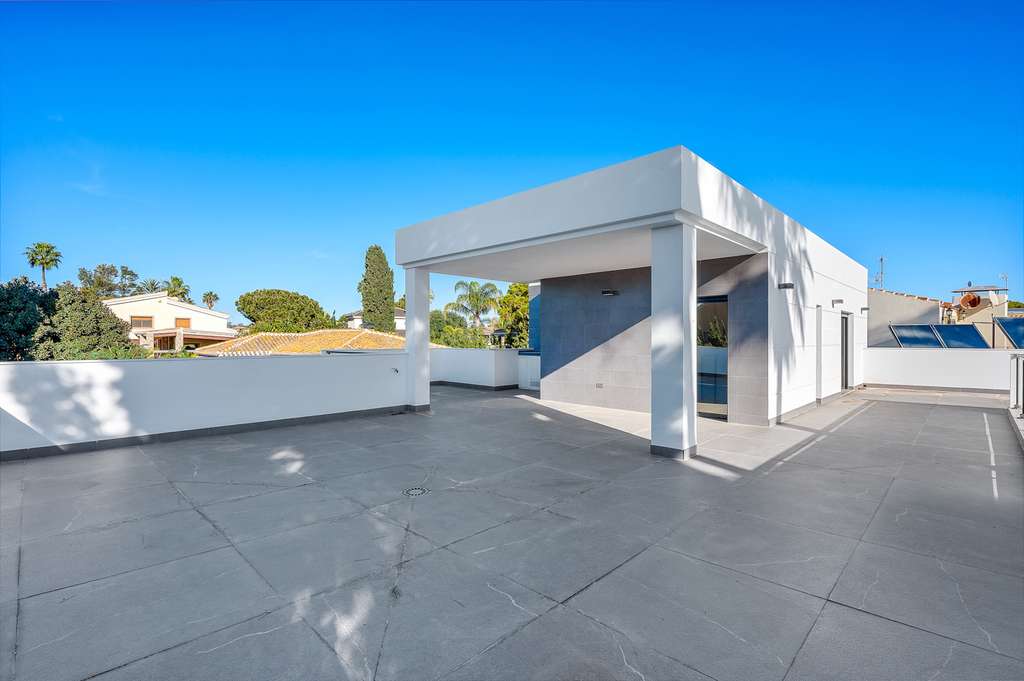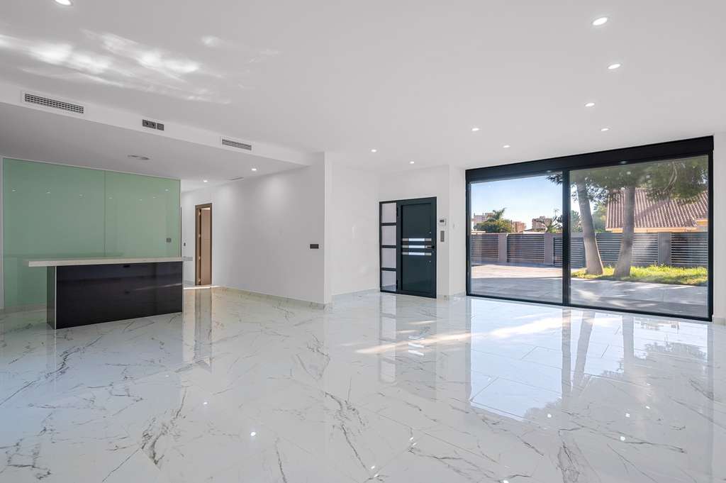 Villa independiente en Dehesa de Campoamor (Orihuela Costa) con una parcela de 700 m² y una vivienda de 235 m² que incluye un solárium. Orientación sur/este y situada a solo 700 metros de las magníficas playas de Campoamor. La propiedad cuenta con 4 dormitorios, 3 baños, un amplio salón-comedor, cocina con isla abierta, un gran solárium con acceso a diferentes zonas exteriores y preparado para la instalación de una barbacoa o cocina exterior. La vivienda dispone de aire acondicionado en toda la casa, calefacción central, persianas eléctricas, ventanas y puertas de aluminio, piscina privada, parcela muy bien cuidada y suelos de mármol, con materiales de alta calidad en toda la propiedad.