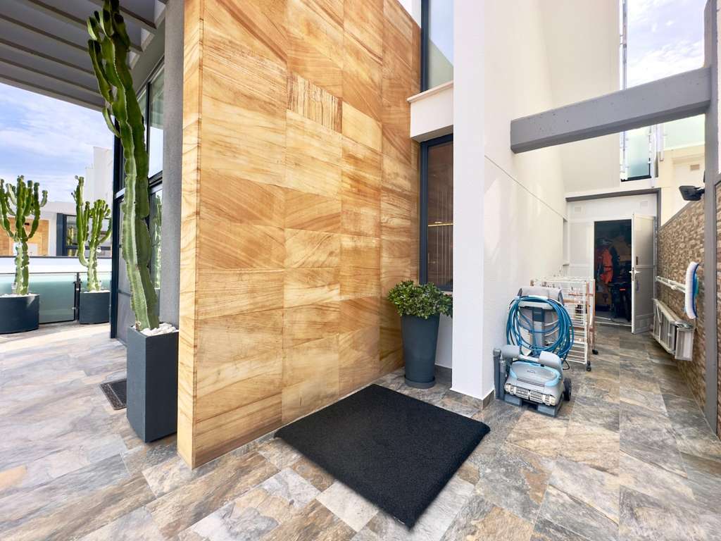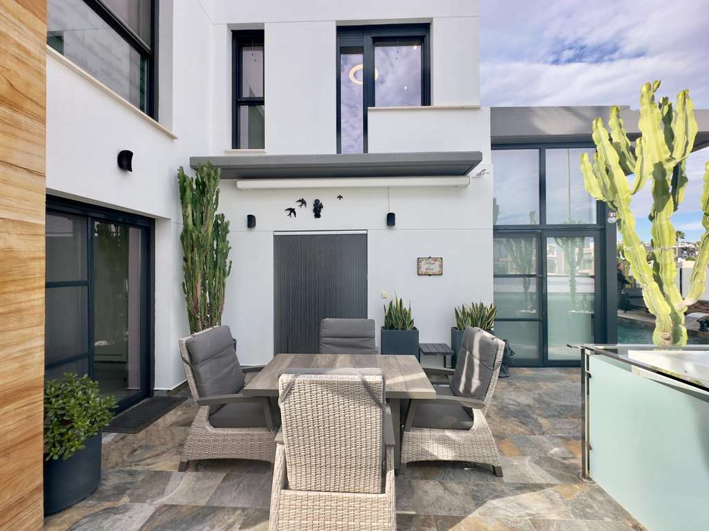 Magnífica villa independiente reformada en Lomas de Cabo Roig (Orihuela Costa), ubicada en una parcela de 197 m2 y equipada con todas las comodidades.~~La vivienda se distribuye en dos plantas más solárium. En la planta baja ofrece un amplio y luminoso salón-comedor con cocina americana y grandes ventanales con vistas a la piscina privada con cascada, además de un dormitorio y un baño con ducha. ~En la primera planta cuenta con dos dormitorios dobles y dos baños completos con suelo radiante. ~En la planta alta se disfruta de un espectacular solárium con vistas al mar, perfecto para relajarse durante todo el año. ~~La propiedad dispone de placas solares, trastero y parking dentro de la parcela. Ubicada en una zona tranquila y bien comunicada, esta villa es una oportunidad única para quienes buscan confort, privacidad y estilo en la Costa Blanca.~~Orihuela Costa es una de las zonas más atractivas de la Costa Blanca, conocida por sus playas de aguas cristalinas, su clima mediterráneo y su ambiente tranquilo pero con todos los servicios a mano. Cuenta con calas y playas con Bandera Azul, centros comerciales como La Zenia Boulevard, una amplia oferta de restaurantes y zonas de ocio, además de prestigiosos campos de golf. Con excelentes conexiones y un entorno ideal para vivir o disfrutar de vacaciones, Orihuela Costa combina calidad de vida, naturaleza y comodidad.