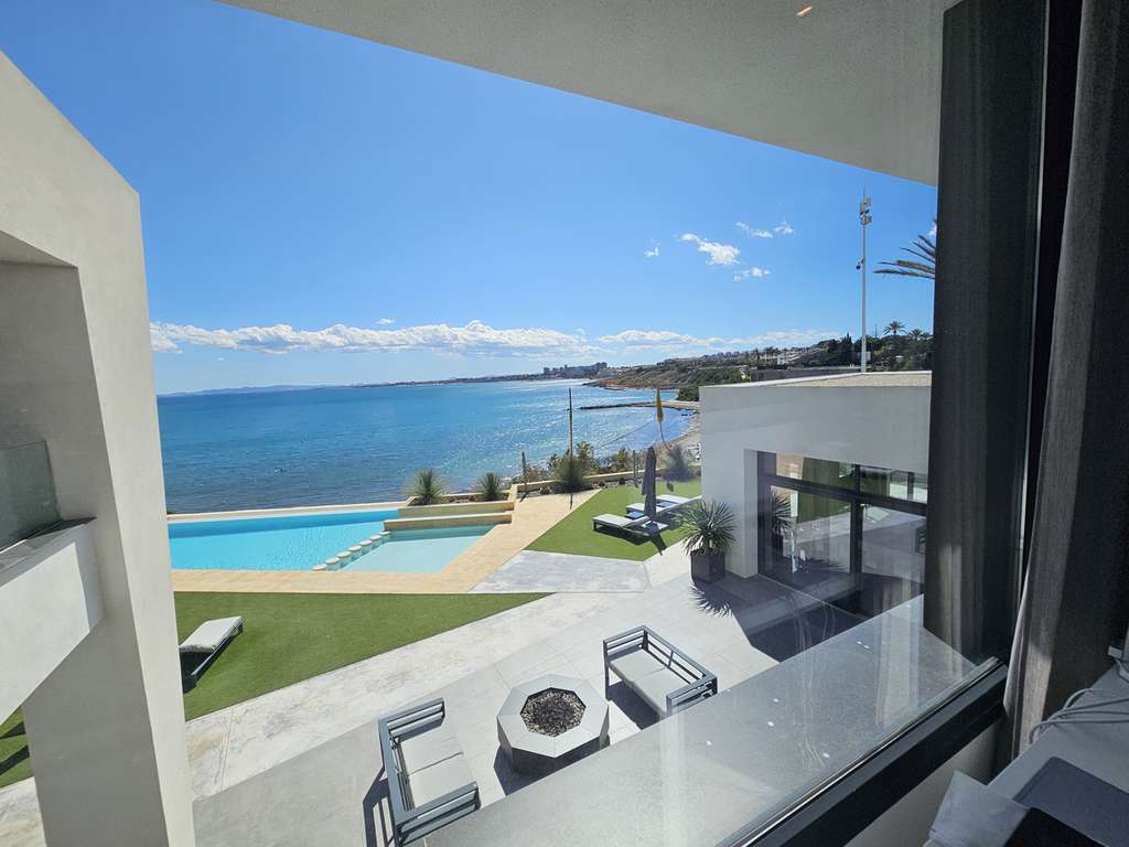 Una auténtica joya del Mediterráneo, recién puesta a la venta y que ya llama la atención en el mundo inmobiliario de lujo. Esta villa, recién disponible en primera línea de playa y ubicada en el prestigioso enclave de Cabo Roig, Costa Blanca Sur, no solo se encuentra en primera línea del resplandeciente mar, sino que fue diseñada y construida personalmente por un reconocido magnate inmobiliario como su refugio privado en España. Considerada la villa más exclusiva de la región, la propiedad ofrece una combinación excepcional de brillantez arquitectónica, impresionantes vistas panorámicas y una privacidad inigualable. Con acceso directo a la playa y con la costa mediterránea como telón de fondo, esta propiedad es un testimonio de la visión de Maher de opulencia y serenidad. La villa cuenta con amplios espacios habitables, servicios de vanguardia y acabados de lujo en todas sus estancias. Las ventanas de vidrio de piso a techo invitan a la luz natural y abren vistas ininterrumpidas al mar, mientras que las áreas de estar al aire libre, que incluyen una piscina infinita, jardines paisajísticos y múltiples terrazas, están diseñadas tanto para la relajación como para el entretenimiento sofisticado. "Esto no es solo una propiedad, es una oportunidad única en la vida de poseer un pedazo de la historia de Cabo Roig", donde no se ha escatimado en gastos para crear un santuario que encarna tanto el lujo moderno como el encanto mediterráneo. "La villa ha sido terminada con un ojo al detalle súper lujoso con acceso de vida y un anexo independiente para invitados.