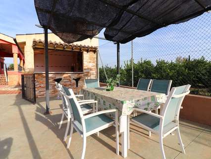 Esta preciosa villa de campo no te dejará indiferente. La propiedad consta de cuatro dormitorios y 4 baños. Con orientación oeste y situada en La Campaneta rodeada de campos de naranjos y limoneros. A esta increíble casa familiar de unos 315m2 se accede a través de un camino de entrada a una gran terraza, que da acceso al pasillo principal. Encontramos un salón/comedor con techo alto y puertas corredizas que dan a una terraza cubierta; amplia cocina/comedor independiente totalmente amueblada y equipada, puerta que da a la terraza y puerta a un lavadero; tres dormitorios dobles, el principal con armarios empotrados y baño en suite con jacuzzi. En la primera planta encontramos un fantástico espacio abierto a amplias posibilidades de uso, con baño equipado con ducha, zona de estar, dormitorio, puertas correderas dobles que dan a una bonita zona de terraza, donde puedes apreciar totalmente las amplias vistas abiertas y a la montaña. Posee una parcela es de unos 2.300 m2 incluyendo una piscina privada de 8 x 4, cocina de verano y área de barbacoa. La propiedad viene con aire acondicionado y garaje independiente. La propiedad se presenta en perfecto estado de conservación.