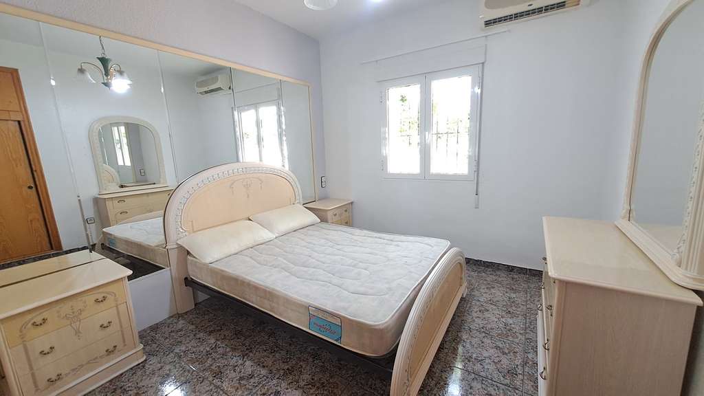 Presentamos esta villa ubicada en Villamartín. Al entrar, encontramos un amplio salón con chimenea. Este salón está conectado al comedor. Desde allí, accedemos a una cocina abierta con lavadero. Un largo pasillo alberga cuatro dormitorios con armarios empotrados y dos baños, uno de ellos con bañera. En la planta superior se encuentra el quinto dormitorio y un amplio solárium con vistas al mar. Esta propiedad goza de una ubicación ideal, ya que está a poca distancia a pie de numerosos bares, tiendas y supermercados. Además, los campos de golf de Campoamor y Ramblas están a solo 10 minutos a pie.