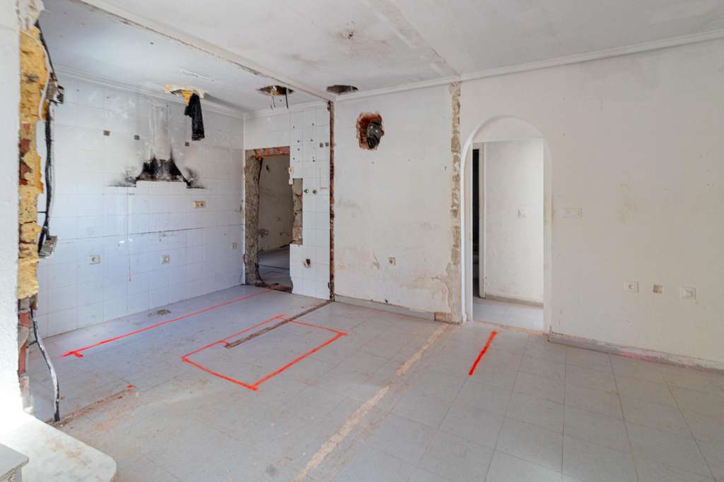 Se vende villa independiente en Playa Flamenca, Costa Blanca Sur. La propiedad ofrece un gran potencial para crear la casa de sus sueños. Un proyecto de reforma orientativo, disponible para el comprador, sugiere una distribución con 3 dormitorios, 2 baños, vestidor y un espacioso celador. Además, la propiedad dispone de espacio para una piscina privada y un solarium. La villa se vende sin reformar, permitiendo al comprador personalizar completamente el diseño y la distribución. La ubicación en Playa Flamenca ofrece tranquilidad y cercanía a playas de arena fina. Es una excelente oportunidad para adquirir una propiedad con potencial en una zona residencial tranquila de la Costa Blanca.
