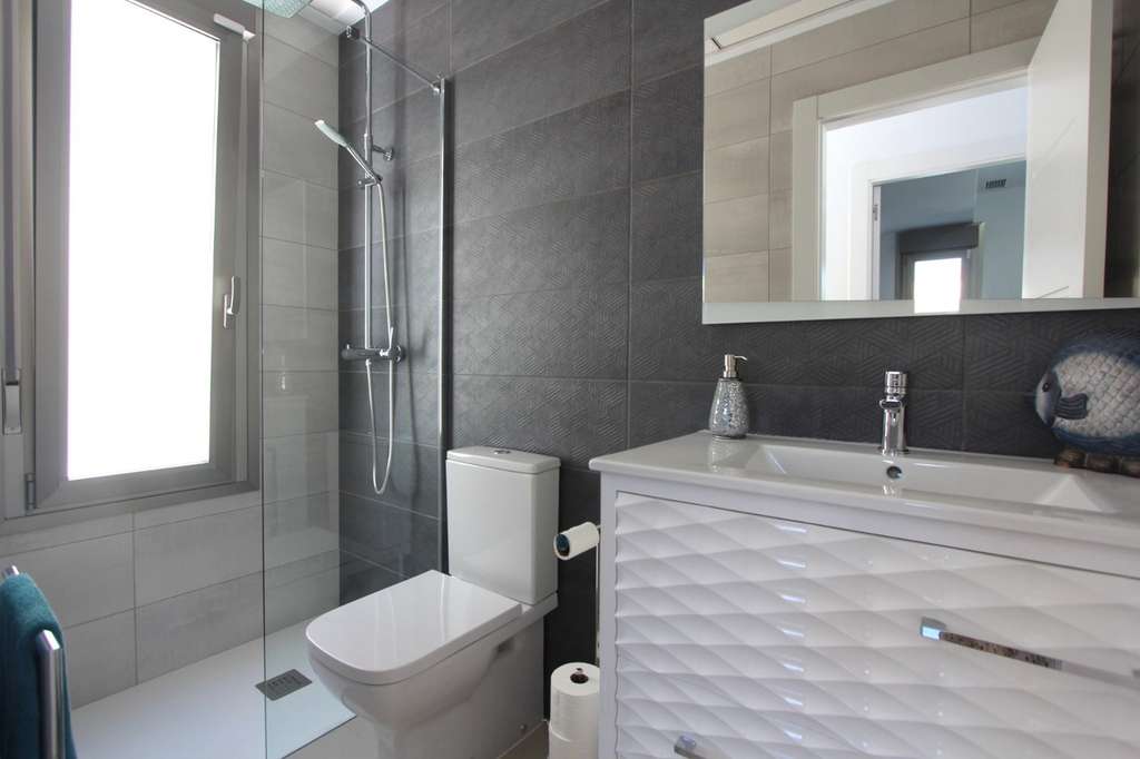 Finalizada en 2022, esta fabulosa villa contemporánea de nueva construcción de 3 dormitorios (posiblemente 5) y 4 baños es el mejor ejemplo de las villas de estilo Don Benito, incorporando todos los extras imaginables y las más altas calidades. Convenientemente ubicada en la urbanización El Galán, cerca de Villamartín, y cerca de todos los servicios y numerosos campos de golf, se encuentra a solo unos minutos de Villamartín Plaza y del Centro Comercial La Fuente, así como a menos de 7 minutos en coche del fabuloso bulevar La Zenia y las increíbles playas de la Costa Blanca. En su interior, esta increíble propiedad consta de dos plantas con sótano adicional y solárium en la azotea, todas ellas con aire acondicionado frío/calor. En la planta baja se encuentra uno de los tres dormitorios dobles, junto con un baño familiar completo con ducha. Hay una amplia cocina-comedor de planta abierta con una moderna cocina bien equipada con todas las comodidades modernas y con acceso a la zona de servicio y trastero cubierta, que también alberga una lavadora. El salón cuenta con puertas correderas de doble acristalamiento que recorren toda la altura del muro exterior y que dan acceso directo a la soleada terraza cubierta y a la gran piscina privada de 6x3 m. Completamente alicatada y con mosquitera, la zona exterior ofrece un amplio espacio alrededor de la propiedad e incorpora un práctico lavadero en la parte trasera, así como una plaza de aparcamiento cubierta y un camino de entrada a la izquierda de la villa. Este espacio exterior es la esencia de la vida española: sol, socialización y relajación con una fantástica piscina (con ducha exterior) para darse un chapuzón cuando el sol aprieta. Unas escaleras conducen a la primera planta, que cuenta con dos dormitorios dobles, ambos con baño en suite, armarios empotrados y mosquiteras retráctiles. El dormitorio principal también tiene acceso a través de puertas correderas acristaladas a un balcón privado, el lugar perfecto para disfrutar de un café con leche por la mañana. Una segunda escalera interior conduce al increíble solárium privado en la azotea, con pérgola de aluminio para dar sombra, una zona de barbacoa también con pérgola y una práctica ducha. Este enclave privilegiado ofrece el espacio perfecto para relajarse y disfrutar del ocio, con vistas al parque, además de garantizar un lugar ideal para tomar el sol durante todo el año. Además de la magnífica distribución interior y exterior, esta fantástica villa también cuenta con un increíble sótano de 56 m², construido como parte de la construcción original como extra del promotor. Este increíble espacio está totalmente terminado y cuenta con un baño completo. Actualmente utilizado como taller y sala de música y cine, este espacio ofrece la flexibilidad de ser utilizado como alojamiento independiente adicional para invitados y podría albergar fácilmente dos dormitorios más, además de los tres existentes, lo que podría convertirla en una casa de lujo de cinco dormitorios y cuatro baños. O simplemente podría dejarlo como el sueño de todo esposo (¡y esposa!) ¡'Man Cave'! La ubicación, la calidad y el valor se combinan para hacer de esta propiedad una perspectiva verdaderamente excepcional para cualquiera que busque la mejor villa con fácil acceso a todo lo que la Costa Blanca tiene para ofrecer: a poca distancia de los mejores bares, restaurantes y tiendas y a solo unos minutos en automóvil del Mediterráneo y esas playas doradas. ¿Qué más se puede pedir? La propiedad viene parcialmente amueblada con la mayoría de los artículos incluidos como se muestra.