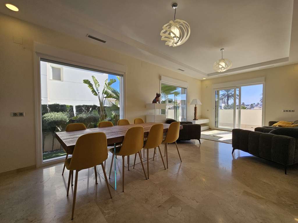 Esta impresionante y moderna villa independiente de 5 dormitorios y 4 baños goza de una ubicación privilegiada en la popular zona de La Zenia, a solo 100 metros de la hermosa playa con bandera azul. La zona cuenta con una amplia selección de servicios, incluyendo el impresionante centro comercial Zenia Boulevard, con más de 150 tiendas y una selección de excelentes restaurantes. De reciente construcción y finalizada en 2023, esta elegante villa ofrece amplias estancias y un maravilloso espacio exterior para disfrutar del maravilloso clima mediterráneo. La planta baja consta de un recibidor que conduce a un fabuloso salón con comedor y una cocina abierta totalmente equipada con isla. Grandes puertas correderas dan acceso a la terraza y a la zona de la piscina. Esta planta también cuenta con un amplio dormitorio doble con baño en suite, un dormitorio doble y un baño independiente. Una escalera interior conduce al sótano, con un lavadero independiente. En la primera planta se encuentran el suntuoso dormitorio principal con vestidor y baño en suite, un segundo dormitorio doble grande con baño en suite y un tercer dormitorio doble de invitados con baño en suite. Cada dormitorio tiene acceso directo a la gran terraza envolvente. Las escaleras interiores conducen a la gran terraza de la azotea, perfecta para relajarse de día o de noche con vistas al mar. El jardín muy atractivo y de bajo mantenimiento se beneficia de la fabulosa piscina climatizada, una gran terraza, una cocina al aire libre con una zona de estar con toldo retráctil, un trastero y un garaje privado. Otras características incluyen calentador de aire de la marca Daikin con serpentín divertido, con calefacción por suelo radiante en todas las plantas.