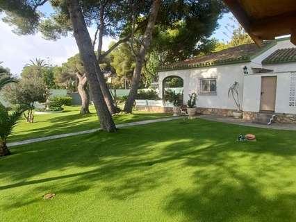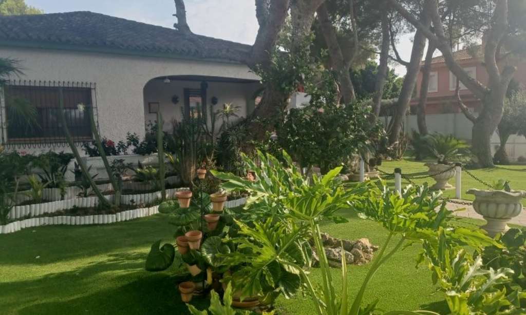 Espectacular Villa Mediterránea de una sola Planta ubicada en Dehesa de Campoamor. En una zona resiencial muy tranquila, a 950 m de las Playas de Campoamor, Glea y Barranco Rubio. Andando a todo tipo de Servicios como Parada de Bus, Supermercado, Cine, Restaurantes, Tiendas, Farmacia,...Ubicada en un entorno verde, donde disfrutar de paseos por su Pinada del Río Nacimiento, Puente de La Glea, ... Paseos a caballo o todo tipo de actividades acuáticas.La vivienda está construida en una sola Planta. Su entrada es ya impactante, dotada de gran identidad mediterránea, tanto en su arquitectura, su diseño y su decoración. La distribución se su villa es sencilla pero muy habitable y confortable. Dispone de espacioso Porche para gozar de todas las vistas que su parcela frondosa de 1.500 m2 nos ofrece. Ardillas y Pájaros también residen en su zona verde cde Pinos Centenarios. Piscina Olímpica cubierta donde poder disfrutar incluso en invierno.Como partes anexas a la casa podemos encontrar un amplio garaje, un gimnasio y una casa para Servicio.No se puede pedir más. Muy Buena Inversión.