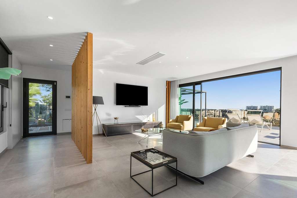 Lujosa Villa de 4 Dormitorios con Vistas al Golf en Las Colinas Golf & Country Club Esta espectacular villa moderna, con un precio de 1.700.000 €, está ubicada en el exclusivo Las Colinas Golf & Country Club, uno de los complejos residenciales más prestigiosos de la Costa Blanca. La propiedad ofrece un equilibrio perfecto entre diseño, confort y lujo. Cuenta con cuatro amplios dormitorios dobles, cada uno con su propio baño en suite, proporcionando la máxima privacidad y comodidad para familiares e invitados. La elegante zona de estar de planta abierta se conecta a la perfección con la cocina de diseño —una verdadera pieza destacada que combina electrodomésticos de alta gama con un estilo excepcional—. Las grandes puertas correderas conducen directamente a la terraza privada con piscina y al jardín paisajístico, ideal para entretener o relajarse bajo el sol mediterráneo. Dos dormitorios se encuentran en la planta baja, mientras que la planta superior ofrece otras dos suites con hermosas vistas abiertas. Cada detalle de esta vivienda ha sido cuidadosamente diseñado para ofrecer el estilo de vida definitivo en un resort de golf.