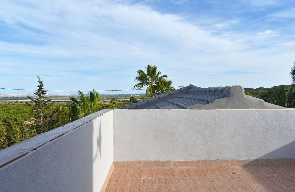 Fantástica y espaciosa villa en un entorno verde, cerca de populares campos de golf. La ubicación es tranquila, privada y ofrece fantásticas vistas a los naranjos, el lago salado y el Mediterráneo. Se accede a la propiedad a través de una puerta peatonal o una puerta más amplia para aparcar el coche en la parcela. En la parte delantera hay una terraza muy espaciosa con piscina. Entramos en la casa y llegamos a un luminoso y espacioso salón con comedor abierto. Justo delante encontramos la cocina independiente y bien equipada. En esta planta también hay dos dormitorios, dos baños y un lavadero. Subimos a la planta superior y encontramos otros 3-4 dormitorios y 3 baños. El dormitorio principal cuenta con jacuzzi, ducha a ras de suelo, aseo y balcón con impresionantes vistas. En la planta superior encontramos la azotea y otra habitación.