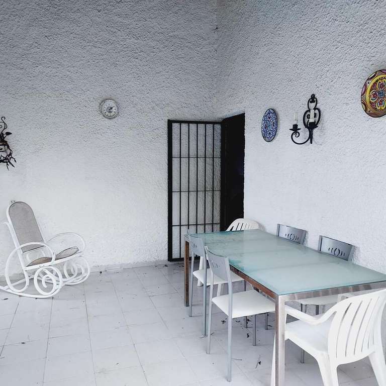 CHALET con 110 m² de superficie construida, 437 m² superficie parcela, amplio salón comedor con una bonita chimenea, 4 habitaciones dobles, más 1 habitación en la buhardilla, 2 baños, cocina independiente con salida al patio y jardín, carpintería interior y exterior de madera, suelo de gres, porche de unos 12 m²El ayuntamiento ofrece un servicio de agua gratuito unas horas los días Miércoles, sábado Y Domingo por el riego del jardín.El gasto total de agua por año suele ser de 150€Hay espacio suficiente para hacer una piscina privadaExtras: accesos minusválidos, agua, luz, barbacoa, despensa, galería, jardín, lavandería, muebles, patio, terraza, , trastero, centros comerciales, supermercados, vallado, parking en parcela.Año de construcción: 1979Agua caliente: termo eléctricoNO hay gastos de comunidad