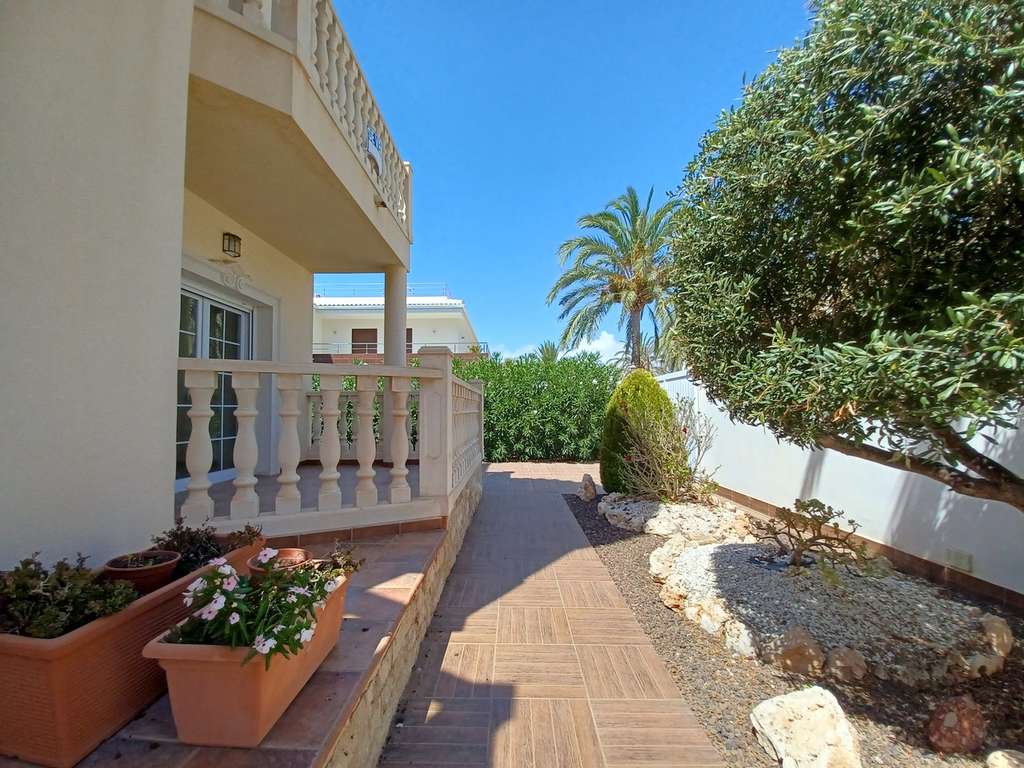 Esta fabulosa casa se encuentra en una ubicación privilegiada en Cabo Roig, a solo 400 m de la playa. Esta impresionante villa ha sido bellamente renovada con un alto estándar, con calefacción por suelo radiante en los 4 baños, aire acondicionado en todas las habitaciones y suelos de granito ceramo en toda la casa. Ubicada en una parcela de 518 m², la propiedad consta de: EXTERIOR Muros altos alrededor de los límites, con nuevas baldosas antideslizantes, piscina infinita de 8×6, espacio para aparcar 3 coches fuera de la carretera, ducha, trastero de ladrillo, espacio para hacer una zona de entretenimiento al aire libre en una parcela de 518 m². SALÓN 6,51 X 5,81 m² Chimenea de leña y chimenea de mármol, ventanas laterales, puerta al aseo con inodoro y lavabo de baja cisterna. En la parte trasera de la propiedad hay puertas que dan al comedor exterior. COCINA 1,91 X 5,90 m² Totalmente equipada con muebles estilo shaker con vitrocerámica, horno eléctrico, frigorífico-congelador, lavavajillas y lavadora, todos fabricados por Bosch. Encimeras de granito y salpicaderos, caldera eléctrica, ventana lateral y puerta trasera que da al jardín. Posibilidad de hacer una cocina de jardín. DORMITORIO UNO 2,44 X 4,33 m2 Ventana lateral, aire acondicionado instalado. Esta habitación podría usarse como oficina o comedor. Tiene todos los cables de comunicación e internet preinstalados. BAÑO 3,65 X 1,77 m2 Calefacción por suelo radiante, cabina de ducha, lavabo, inodoro de baja descarga, bidé y ventana lateral. Alicatado con buen gusto en color crema. DORMITORIO DOS 3,36 X 3,67 m2 Ventana de patio al frente que da al balcón frontal y aire acondicionado. PRIMER PISO DORMITORIO TRES 3,24 X 3,92 m2 con BAÑO EN SUITE 3,65 X 1,87 m2 Puerta de patio que da a balcón privado, aire acondicionado y puerta a baño en suite. Español En suite con calefacción por suelo radiante, alicatado en todas partes, ducha a ras de suelo, inodoro de bajo consumo, bidé y lavabo de cristal. DORMITORIO CUATRO 3,74 X 3,58 m2 con BAÑO EN SUITE 3,60 X 1,92 m2 Puerta de patio a la parte trasera que da a un balcón trasero de 20m2, aire acondicionado y puerta al baño en suite. Baño en suite con calefacción por suelo radiante, ducha a ras de suelo, inodoro de bajo consumo, dormitorio y lavabo doble para él y para ella. DORMITORIO CINCO 3,87 X 3,90 m2 con BAÑO EN SUITE 3,55 X 1,92 m2 Ventana de patio al frente que da al balcón privado delantero, aire acondicionado y puerta al baño en suite. Baño en suite con bañera y ducha fija, inodoro de bajo consumo, bidé, lavabo, calefacción por suelo radiante y alicatado en todas partes. Hay una ventana a la parte trasera. Todos los accesorios y accesorios son nuevos, nunca usados y de la más alta calidad. SOLÁRIUM EN LA SEGUNDA PLANTA Con balaustrada de piedra, suelo de baldosas y vistas al mar. Soleado y privado. Es recomendable visitar la propiedad para apreciar la calidad y los acabados. Para concertar una cita, llámenos hoy mismo.