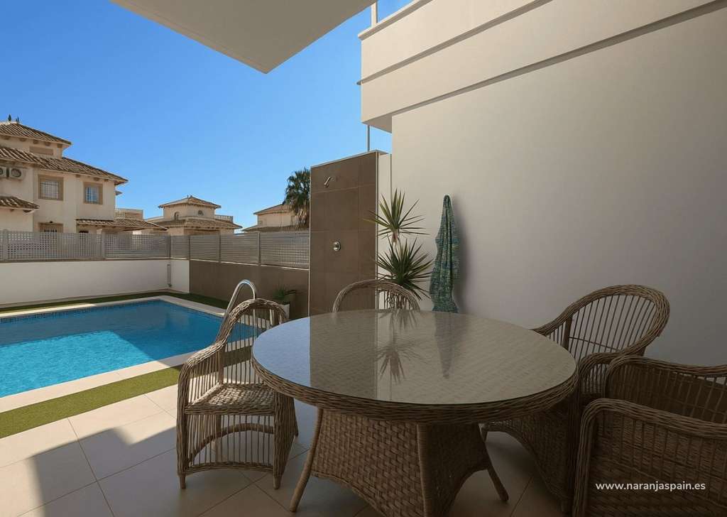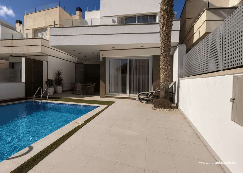 Descubra este chalet independiente en perfecto estado, ubicado en la prestigiosa zona de Lomas de Cabo Roig / Los Dolses, Orihuela Costa. Construido en 2016, ofrece 125 m² distribuidos en tres plantas, sobre una parcela de 230 m².