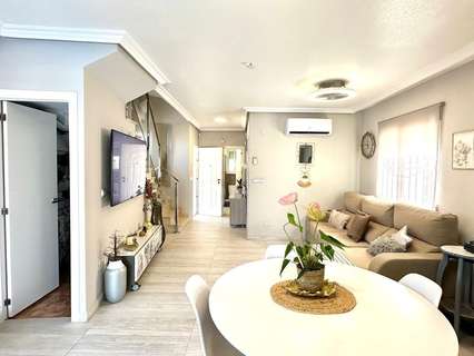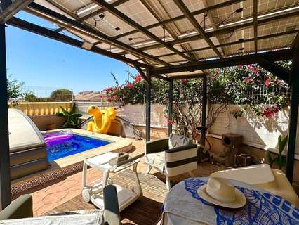 Chalet Independiente en Esquina con Piscina Propia y Solárium – A tan solo 1 km del mar Te presentamos esta magnífica propiedad situada en una exclusiva urbanización residencial a tan solo un kilómetro de la costa. Se trata de un chalet independiente en esquina que ofrece privacidad, confort y una excelente calidad de vida tanto para residencia habitual como para segunda vivienda cerca del mar. Distribución y espacios exteriores Con una parcela de 200 m² y 119 m² construidos, esta vivienda se distribuye en tres plantas que maximizan el espacio y la funcionalidad. La propiedad cuenta con acceso para vehículo y aparcamiento dentro de la parcela, así como con su propia piscina privada, todo rodeado por un jardín bien mantenido y zonas de terraza ideales para disfrutar del aire libre. Además, forma parte de una urbanización que ofrece también piscina comunitaria, brindando más opciones de ocio sin salir del entorno. Primera planta: zonas comunes y confort Al acceder a la vivienda nos recibe un hall acristalado que aporta luminosidad y amplitud desde el primer momento. En esta planta se encuentra un moderno cuarto de baño completo, una cocina independiente de diseño actual, completamente equipada con electrodomésticos de calidad, una despensa adicional y un salón comedor amplio y luminoso. Desde el salón se accede a una terraza acristalada con vistas directas a la piscina privada y al jardín, creando un ambiente perfecto para reuniones familiares o momentos de relax. Segunda planta: zona de descanso En la planta superior encontramos tres habitaciones dobles, todas con armarios empotrados. La habitación principal cuenta con su propio cuarto de baño en suite, garantizando intimidad y comodidad. Además, hay un segundo baño completo que da servicio al resto de habitaciones. Tercera planta: solárium y trastero La tercera planta alberga un práctico trastero y un amplio solárium privado, ideal para tomar el sol, colocar una zona chill-out o incluso un pequeño huerto urbano. Desde aquí se pueden disfrutar de vistas despejadas y un entorno tranquilo. Extras y eficiencia energética La vivienda está equipada con aire acondicionado en todas las estancias para asegurar el máximo confort durante todo el año. Además, dispone de placas solares ya instaladas, lo que contribuye a un consumo energético más eficiente, reduciendo significativamente los costes eléctricos y promoviendo un estilo de vida más sostenible. Resumen de características: Chalet independiente en esquina Parcela de 200 m² 119 m² construidos Piscina privada y piscina comunitaria 3 plantas 3 habitaciones con armarios empotrados 3 baños (1 en suite) Cocina independiente equipada Salón comedor + terraza acristalada Trastero y solárium privado Aire acondicionado en todas las estancias Placas solares para autoconsumo Parking dentro de la parcela A solo 1 km del mar Una vivienda perfecta para quienes buscan espacio, privacidad y un entorno tranquilo con todos los servicios cerca y el mar a solo unos minutos. ¿Te gustaría agendar una visita o recibir más información? Estamos a tu disposición.