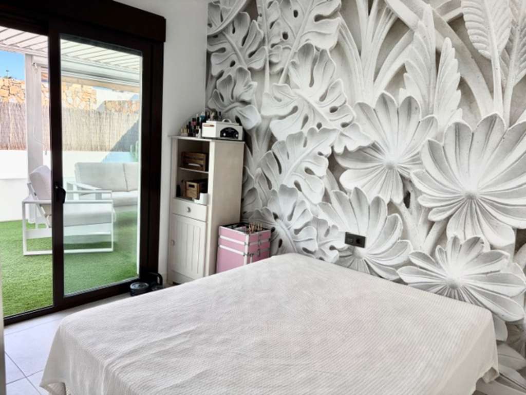 Descubra esta preciosa villa independiente de una sola planta (2017), ubicada en la codiciada zona de Lomas de Cabo Roig (Orihuela Costa), Alicante. Esta moderna villa ofrece un luminoso salón-comedor de planta abierta con acceso directo a la terraza y a la piscina privada, ideal para recibir invitados o relajarse bajo el sol, una moderna cocina americana totalmente equipada, aire acondicionado (frío/calor) en toda la propiedad, tres dormitorios con armarios empotrados, dos baños (uno en suite), trastero, solárium privado en la azotea y aparcamiento privado. Con una ubicación ideal a poca distancia a pie de todos los servicios, como restaurantes, bares, supermercados y tiendas, y a solo 5 minutos en coche de las hermosas playas de arena de Cabo Roig y Campoamor, esta propiedad ofrece la combinación perfecta de comodidad, practicidad y estilo de vida mediterráneo.