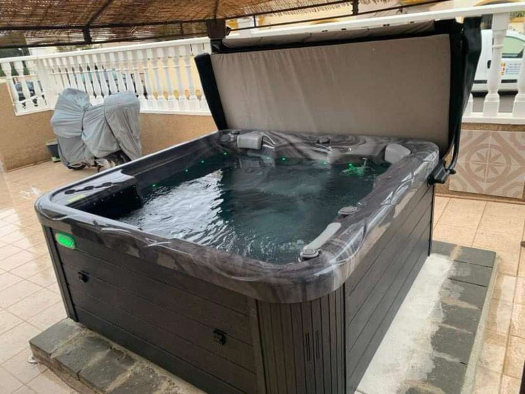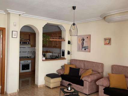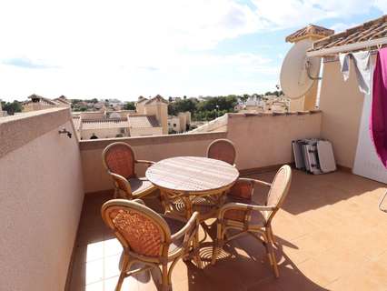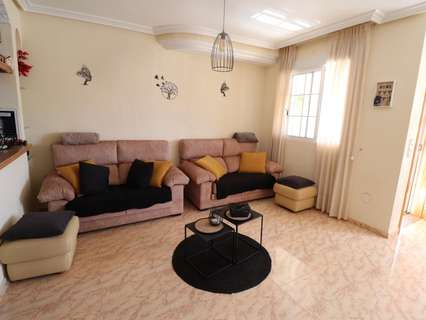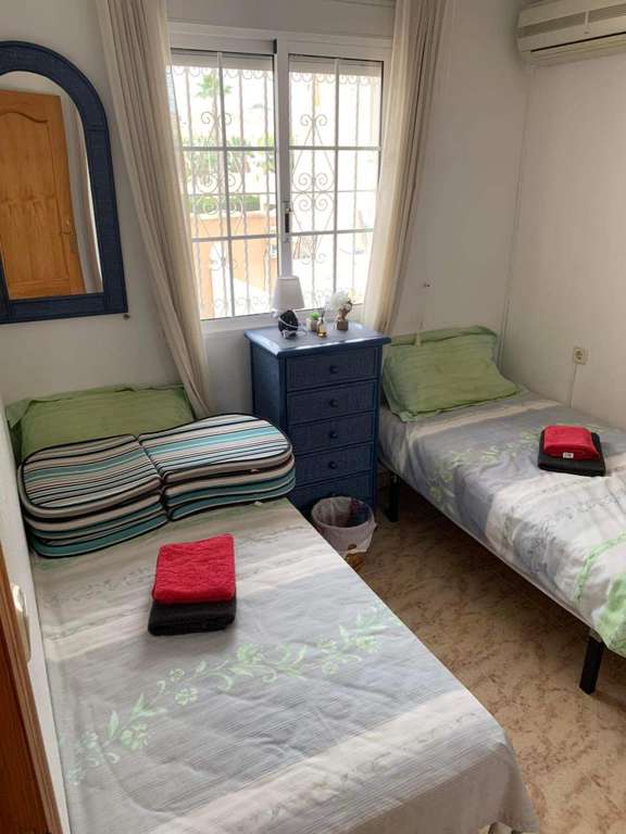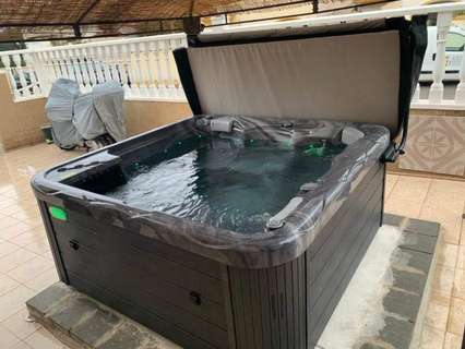 Preciosa vivienda situada en una zona tranquila de Las Filipinas, en Orihuela Costa. Esta propiedad está construida en dos plantas y ofrece una distribución cómoda y funcional. En la planta baja se encuentra una cocina totalmente equipada que se abre a un acogedor salón, un dormitorio y un cuarto de baño. En la planta superior hay otros dos dormitorios –uno de ellos con balcón privado– y un segundo cuarto de baño. Desde esta planta se accede a una terraza que conduce a un amplio solárium, donde también hay un trastero muy práctico.El espacio exterior es especialmente agradable, con varias terrazas, una de ellas cubierta, un jacuzzi ideal para relajarse, una plaza de aparcamiento privada, espacio de almacenamiento adicional y un jardín bien cuidado. La casa cuenta con aire acondicionado en el salón y en todos los dormitorios, todos ellos equipados con armarios empotrados. Se vende completamente amueblada, se encuentra en excelente estado y dispone de licencia turística, lo que la convierte en una excelente opción tanto para uso personal como para inversión.La urbanización ofrece una bonita piscina comunitaria y una zona ajardinada compartida, perfecta para disfrutar del agradable clima de la Costa Blanca. La ubicación es ideal: a poca distancia a pie de todos los servicios, cerca de varios campos de golf, a solo 6 kilómetros de las hermosas playas de la Costa Blanca y a 55 kilómetros del aeropuerto de Alicante. Tiendas y restaurantes están a aproximadamente 1 kilómetro, y el campo de golf más cercano a solo 2 kilómetros.Con una superficie construida de 90 m², una superficie útil de 80 m² y una parcela de 144 m², esta vivienda combina espacio, confort y una ubicación excelente. Dispone además de balcón, porche, solárium, terraza en la azotea, ventanas con doble acristalamiento y todas las comodidades necesarias para vivir todo el año o disfrutar de unas vacaciones inolvidables.