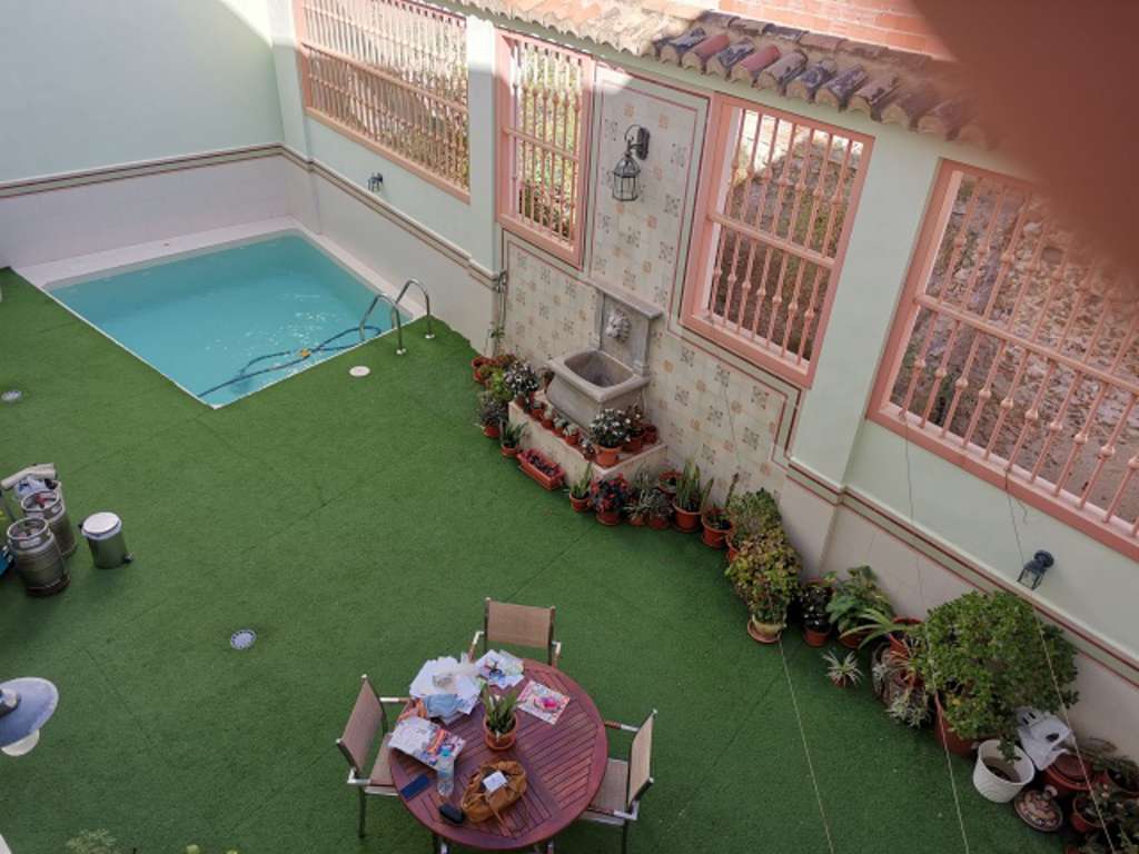 Excepcional vivienda en Orihuela. Situada en un entorno monumental y tranquilo. Superficie 380 m2.- 4 dormitorios, dos con baño en suite y principal con vestidor. - 3 baños, con radiadores. - Salón- Comedor- Cocina con isla y zona de comer. - Lavadero-cuarto de plancha- Patio Todas las estancias amplias y luminosas gracias a sus grandes ventanales. Orientación sur, con techos altos y puertas ancho especial.Equipamiento: Armarios empotrados de gran capacidad en dormitorios. Calefacción por suelo radiante y Aire Acondicionado frio /calor con termostato en todas las estancias. Piso de madera, excepto baños y cocina. Ascensor. Piscina de cloración salina en patio. Intercomunicados-radio FM-conexión para reproductor musical en todas las estancias. Ventanas de madera tropical en todas las estancias y correderas aluminio doble cristal con persianas motorizadas en comedor y cocina.PLANTA BAJA: Cochera de gran capacidad Entrada principal con escalera de mármol Bajo con entrada independiente, con varios posibles usos: despacho-oficina, sala de recreo, apartamento. Cuenta con baño y preinstalación de electricidad y fontanería para cocina, así como con tiro de chimenea.SEGUNDA PLANTA: Planta totalmente diáfana apta para hacer dos viviendas o una.