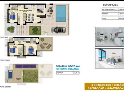 Villas con 3 dormitorios, 3 baños, un salón abierto con la cocina, jardín privado con la piscina y plaza de aparcamiento.