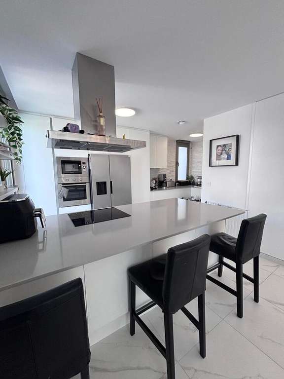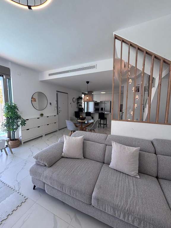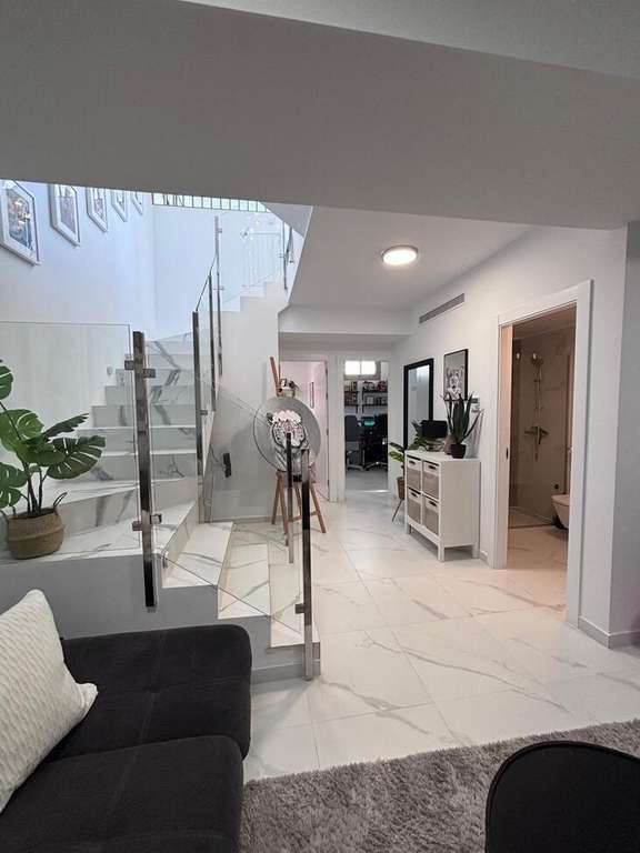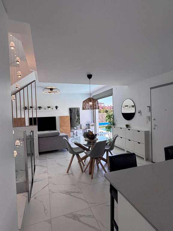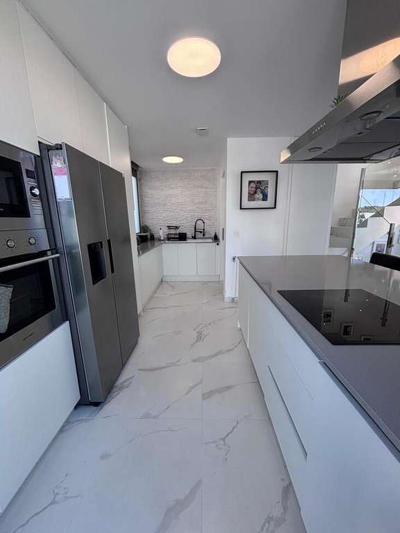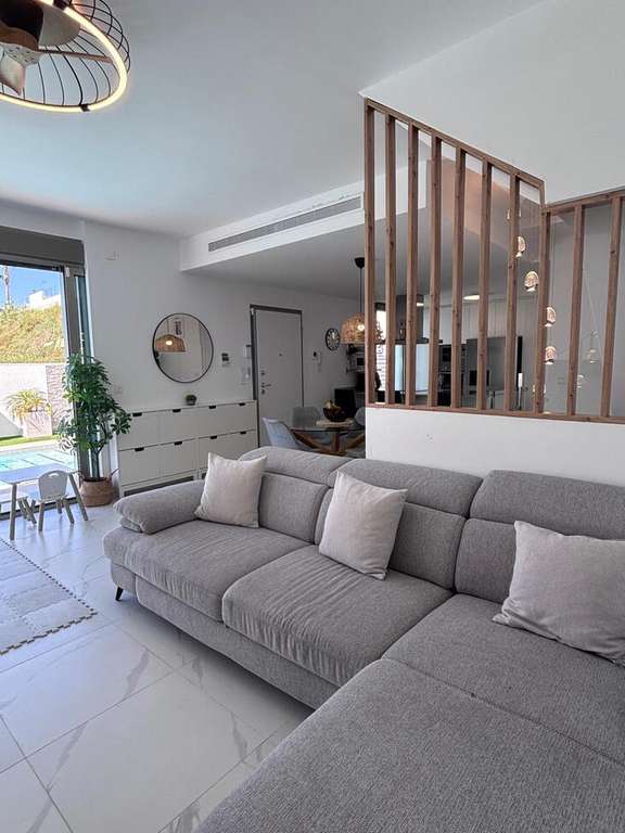 Hermosa villa contemporánea de 5 dormitorios Esta impresionante villa en esquina con orientación suroeste ofrece lujo moderno, amplios espacios y hermosas vistas, lo que la convierte en el hogar perfecto tanto para vivir permanentemente como para disfrutar de vacaciones bajo el sol. La propiedad cuenta con 5 amplios dormitorios, 3 baños y un aseo de invitados, todos diseñados pensando en la comodidad y la practicidad. El dormitorio principal cuenta con un elegante baño en suite y vestidor, mientras que los dormitorios adicionales incluyen armarios empotrados, que proporcionan un excelente espacio de almacenamiento en toda la casa. En el corazón de la casa se encuentra una gran cocina y sala de estar de planta abierta, creando un espacio luminoso y sociable ideal para la vida familiar y el entretenimiento. La villa cuenta con aire acondicionado frío/calor, lo que garantiza el confort durante todo el año. En el exterior, el jardín de hermoso diseño ofrece todo lo que necesita para disfrutar del estilo de vida mediterráneo. La piscina privada está rodeada de áreas para tomar el sol, así como de cómodos espacios de descanso a la sombra, perfectos para relajarse o recibir invitados. También cuenta con una zona de juegos infantiles, lo que la hace ideal para familias. La villa se encuentra en una codiciada parcela de esquina con orientación suroeste, lo que permite disfrutar del sol durante todo el día y de vistas espectaculares tanto desde el jardín como desde el balcón. Otras características incluyen aparcamiento privado para dos coches, una práctica zona de servicio y un espacioso sótano que ofrece dos dormitorios adicionales y un baño con ducha, proporcionando un alojamiento flexible para invitados o familiares. La propiedad se vende completamente amueblada y ha sido acabada con pintura exterior de silicona de alta calidad, lo que proporciona durabilidad y un aspecto moderno y fresco. Una casa verdaderamente excepcional que combina espacio, estilo y vistas impresionantes.