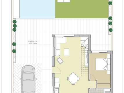 Aparcamiento en la parcela con puerta motorizada